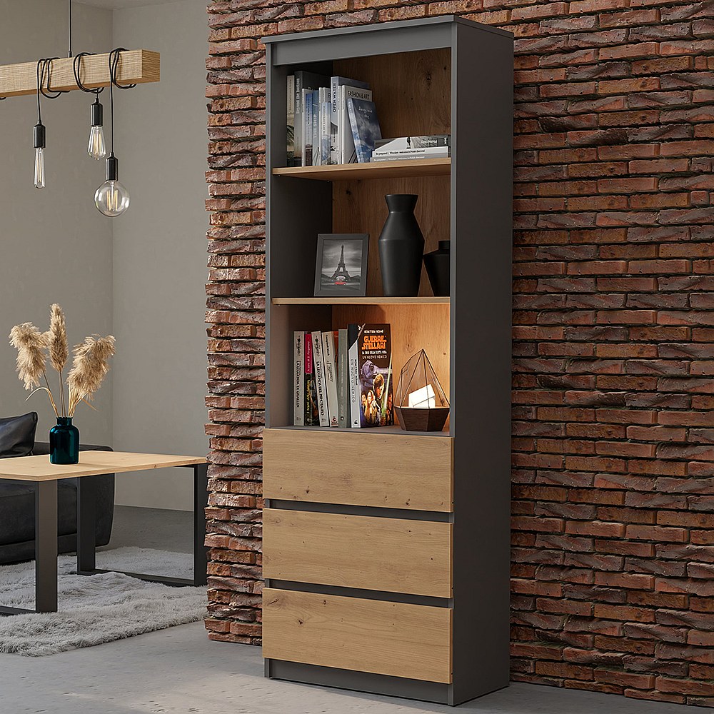 Libreria moderna 60x180x35 cm con cassetti rovere e antracite LBT6