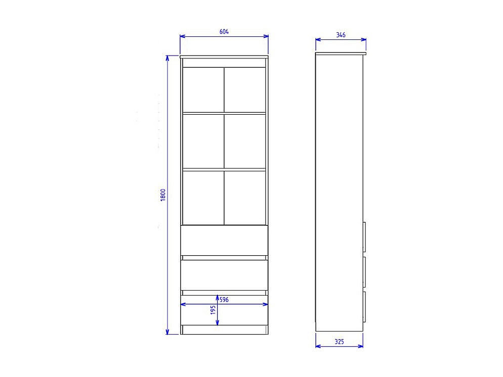 Libreria moderna 60x180x35 cm con cassetti bianca LBT6