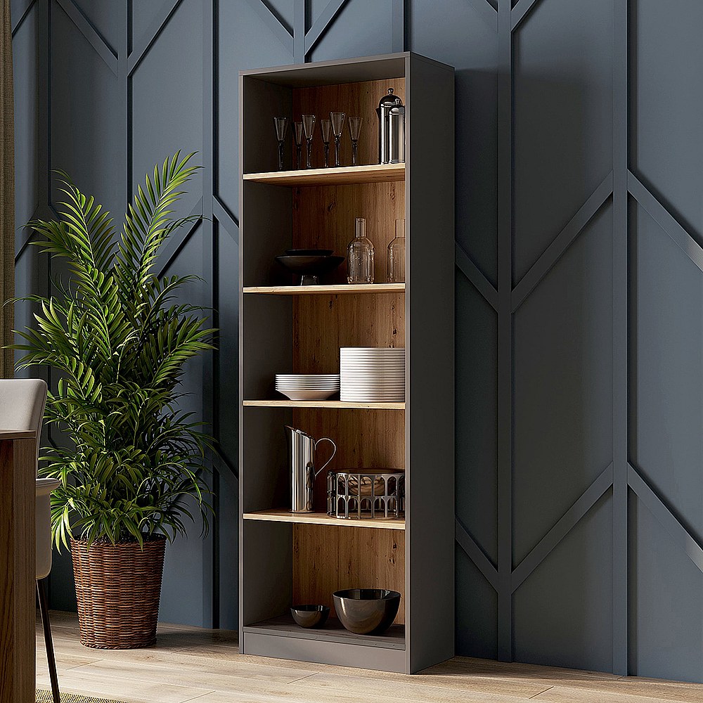 Libreria moderna 60x182x30 cm con ripiani rovere e antracite LBT2