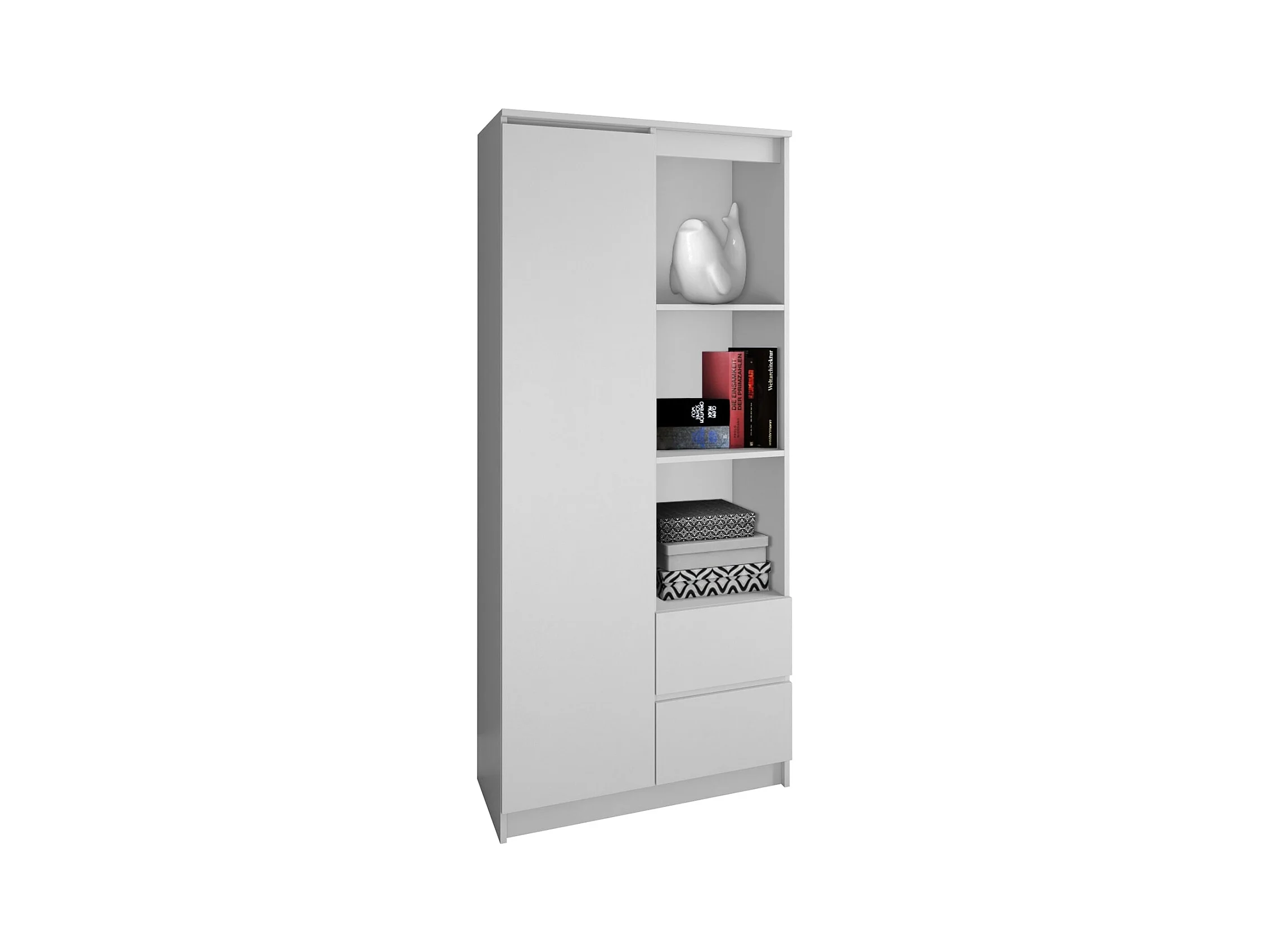 Libreria moderna 80x180x35 cm con anta e cassetti bianco LBT7
