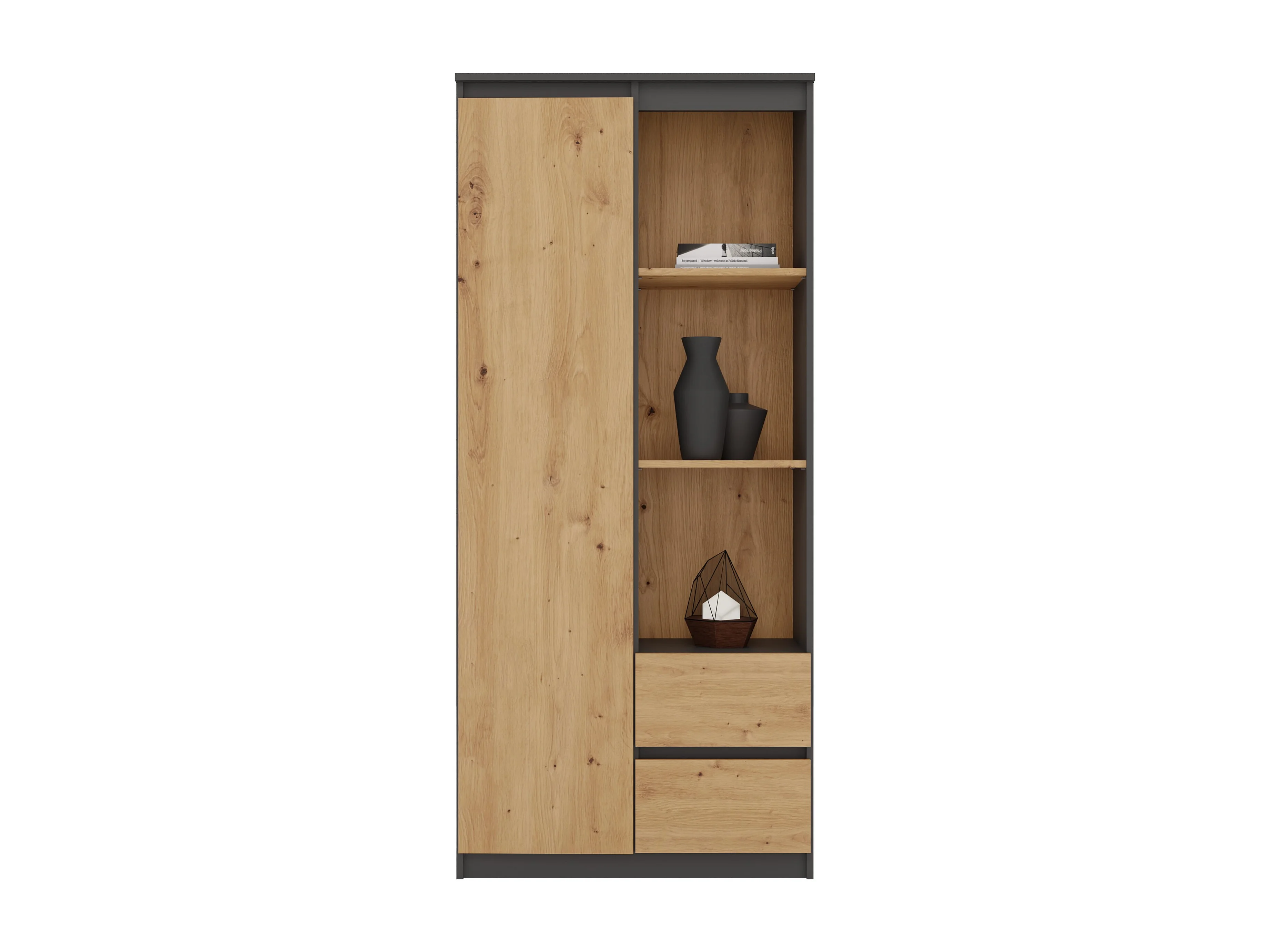 Libreria moderna 80x180x35 cm con anta e cassetti rovere e antracite LBT7