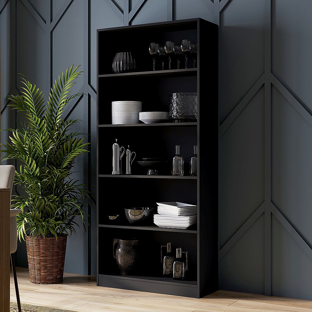 Libreria moderna 80x182x30 cm con 4 ripiani nera LBT3