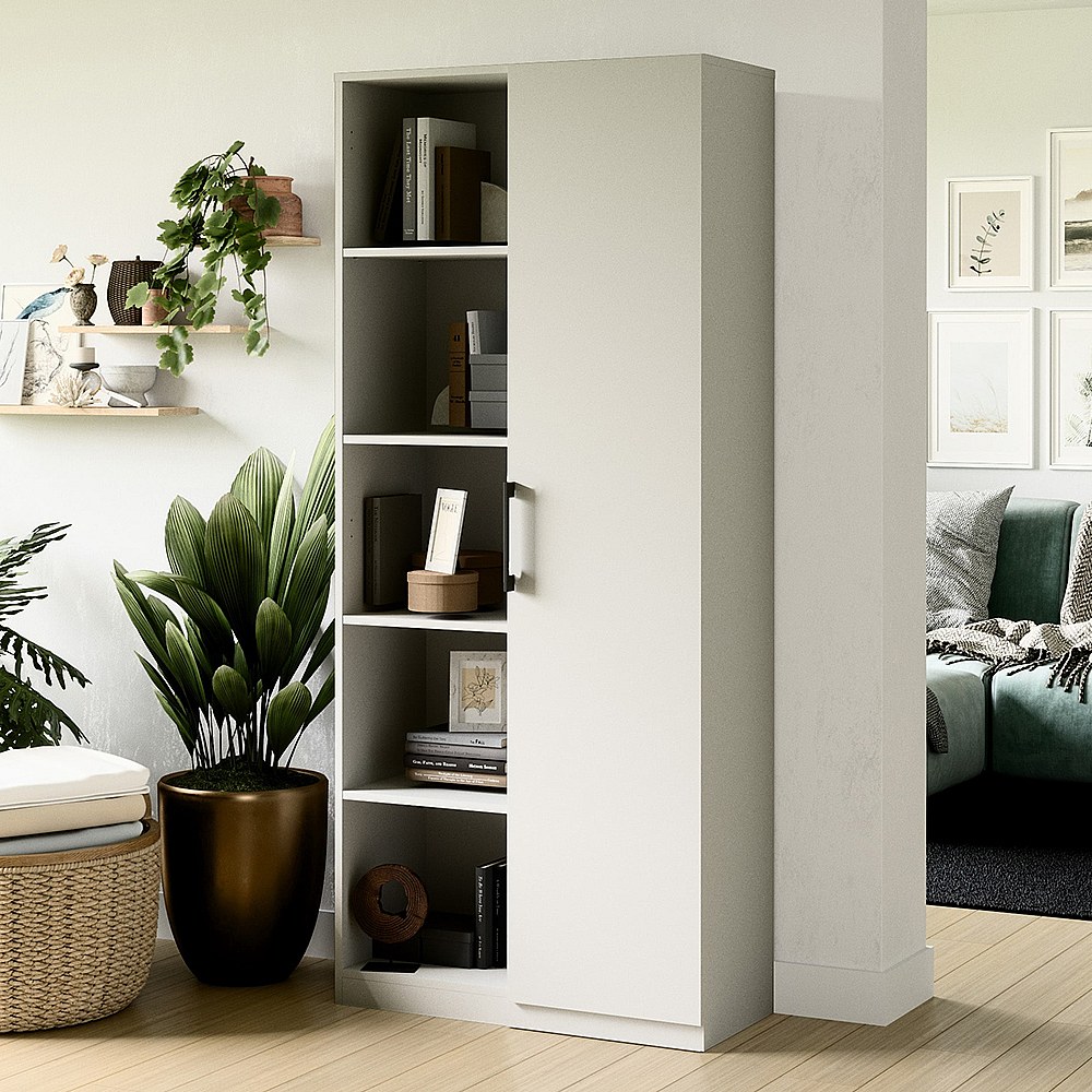 Libreria moderna 80x182x30 cm con vani a giorno e anta bianco LBT8