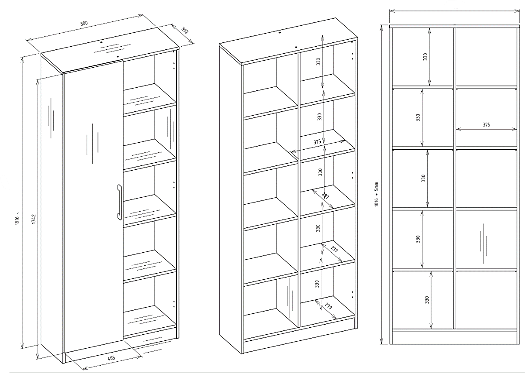 Libreria moderna 80x180x35 cm con anta e cassetti bianco LBT7