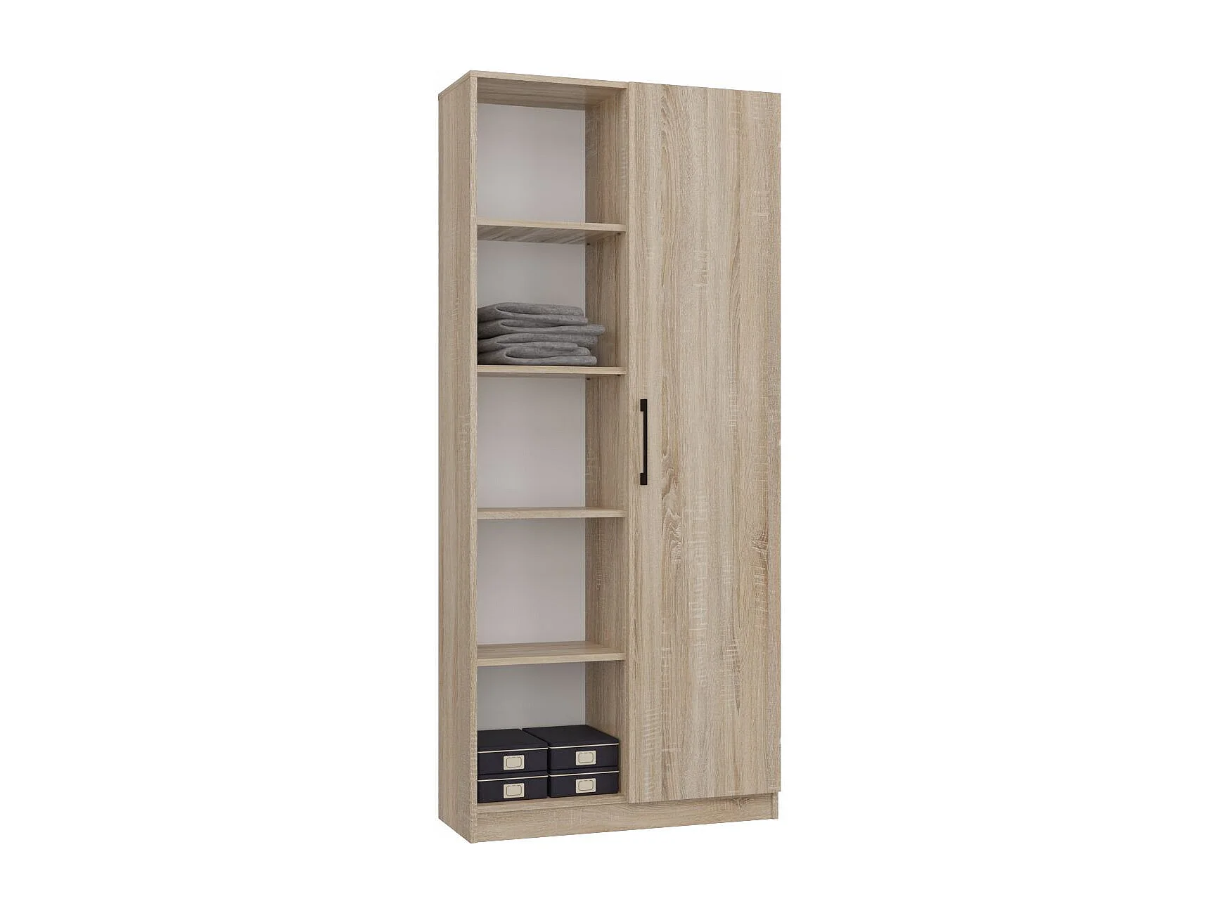 Libreria moderna 80x182x30 cm con vani a giorno e anta rovere chiaro LBT8