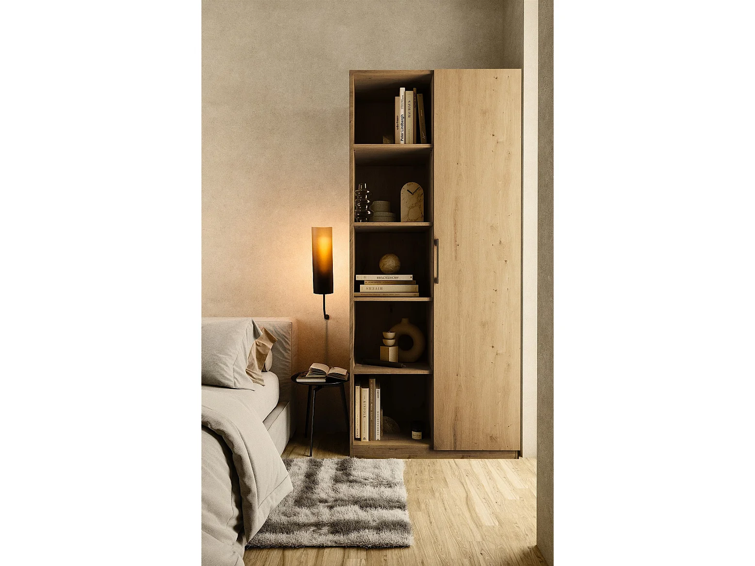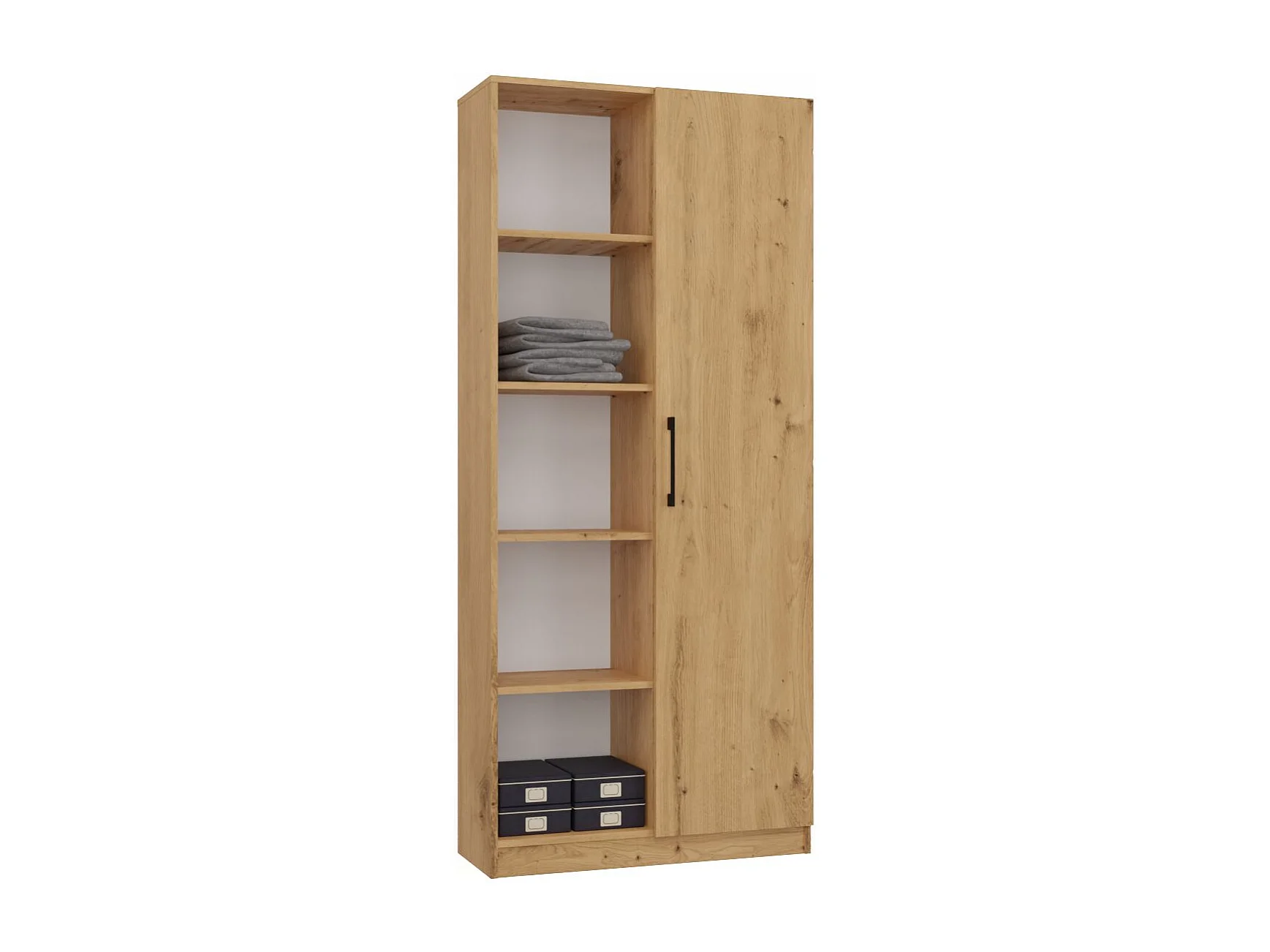 Libreria moderna 80x182x30 cm con vani a giorno e anta rovere naturale LBT8