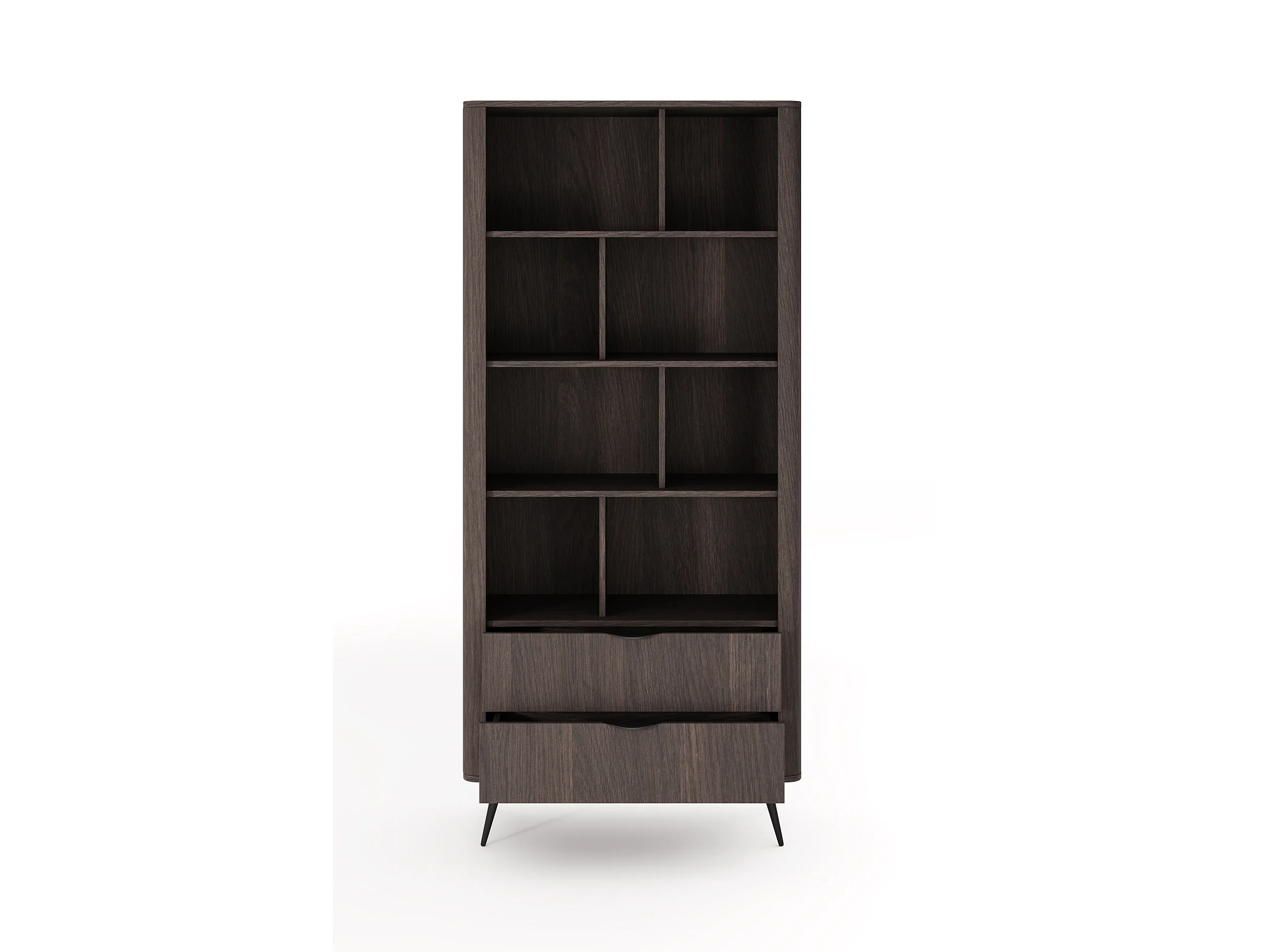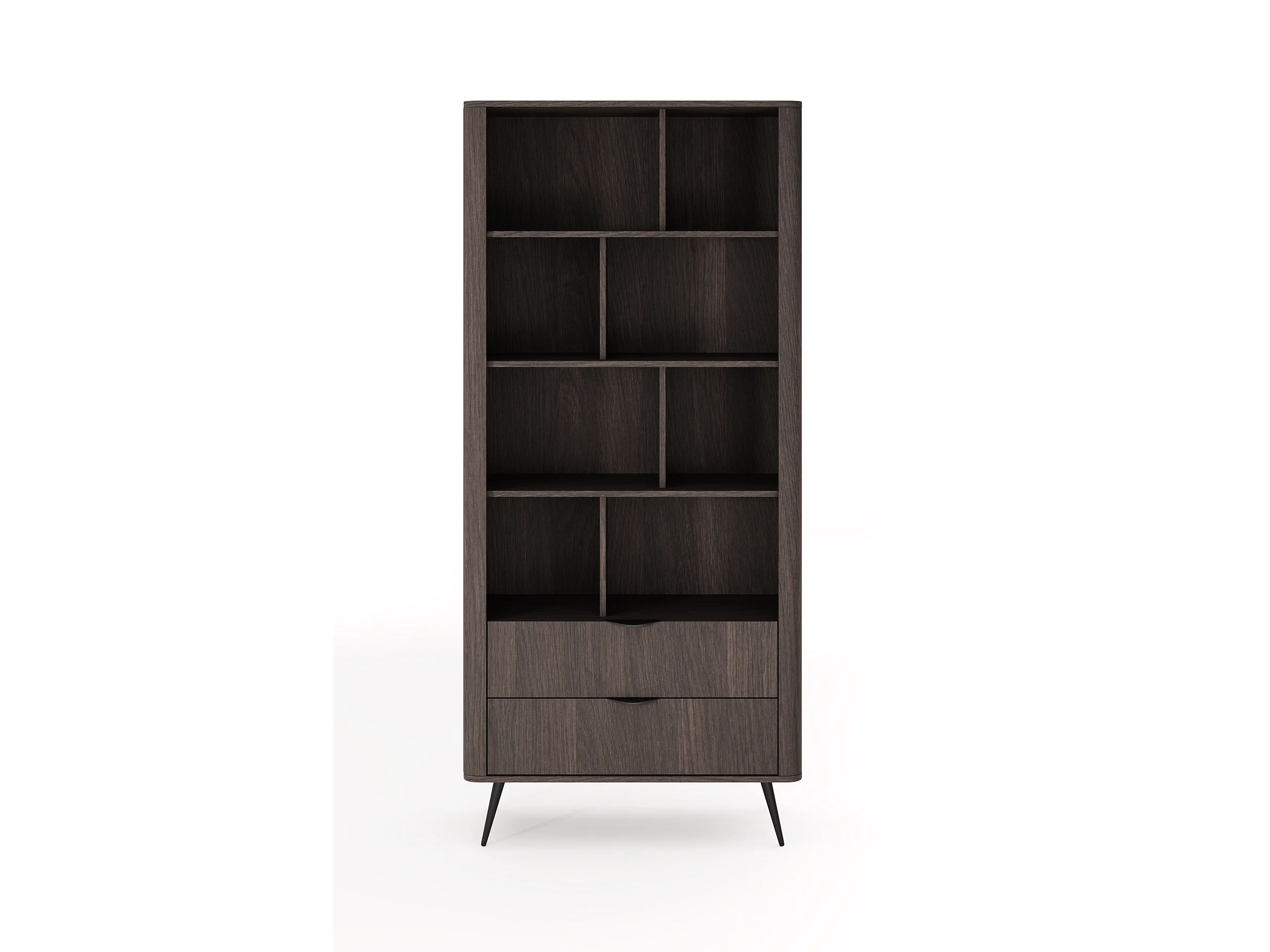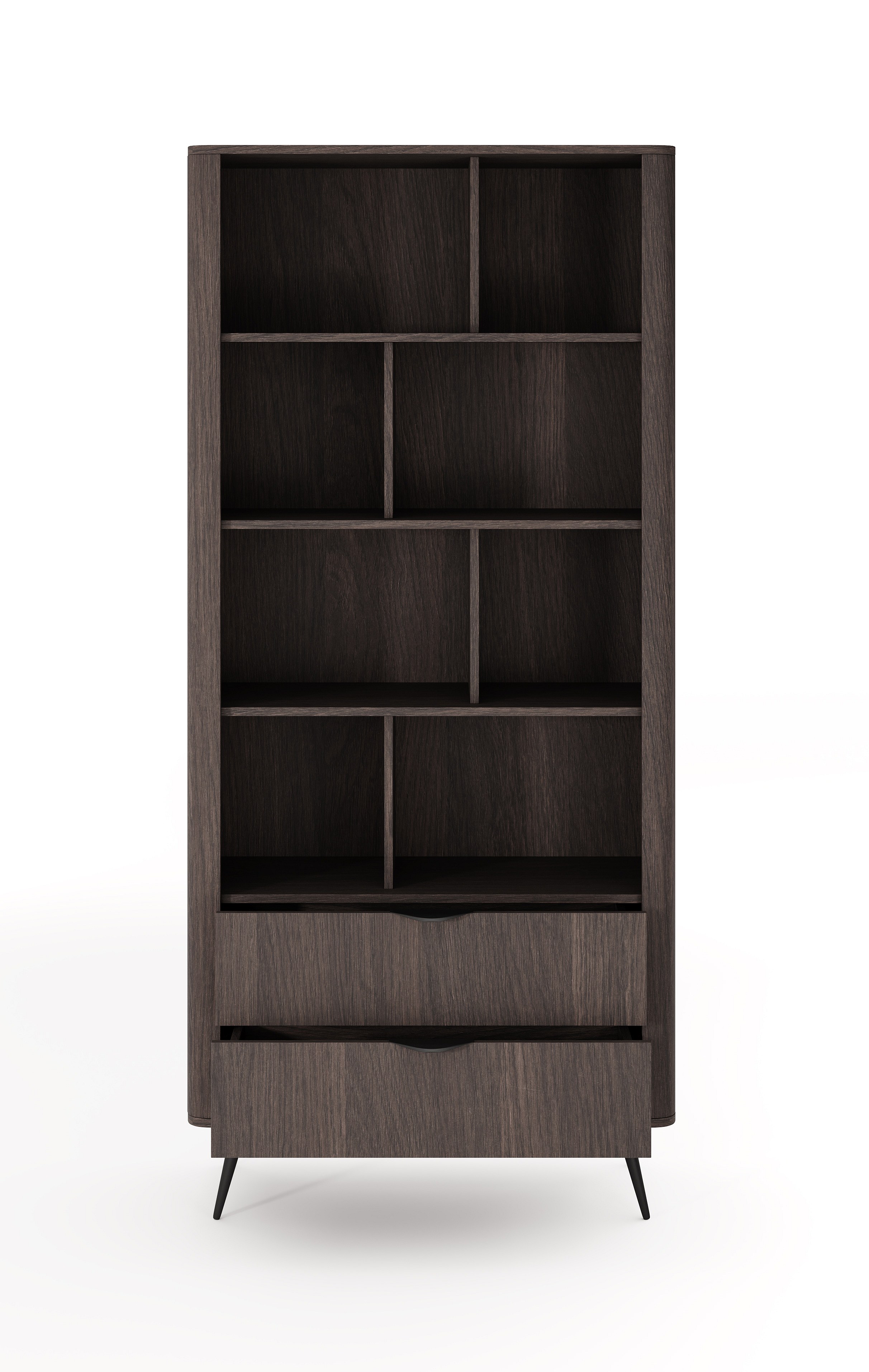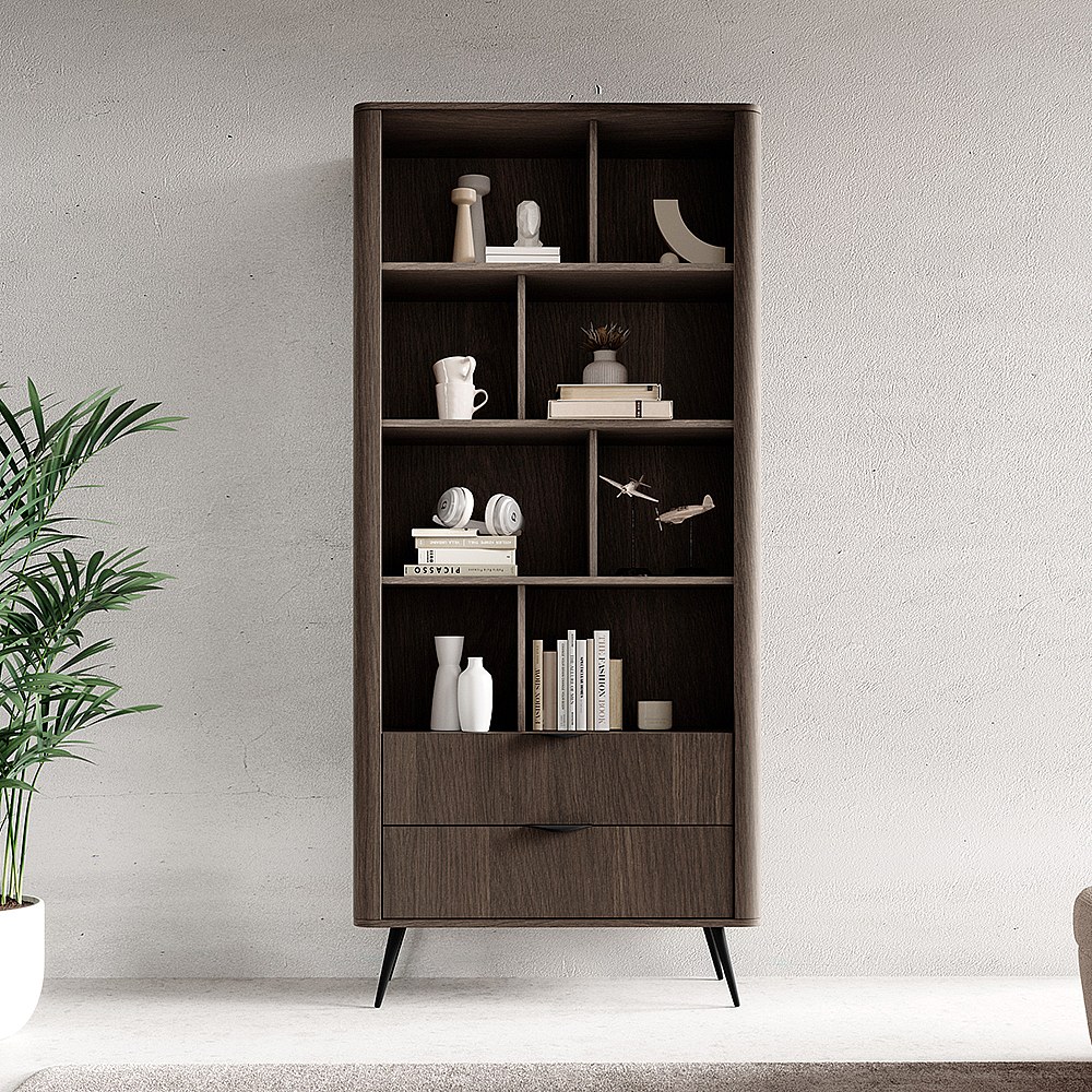 Libreria moderna 88x194 cm con 8 vani e 2 cassetti quercia scuro LBLK3