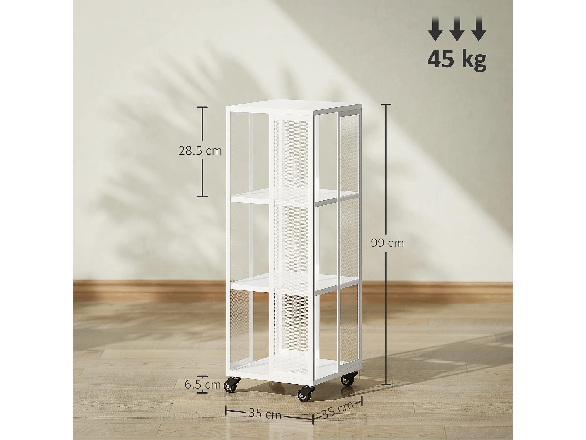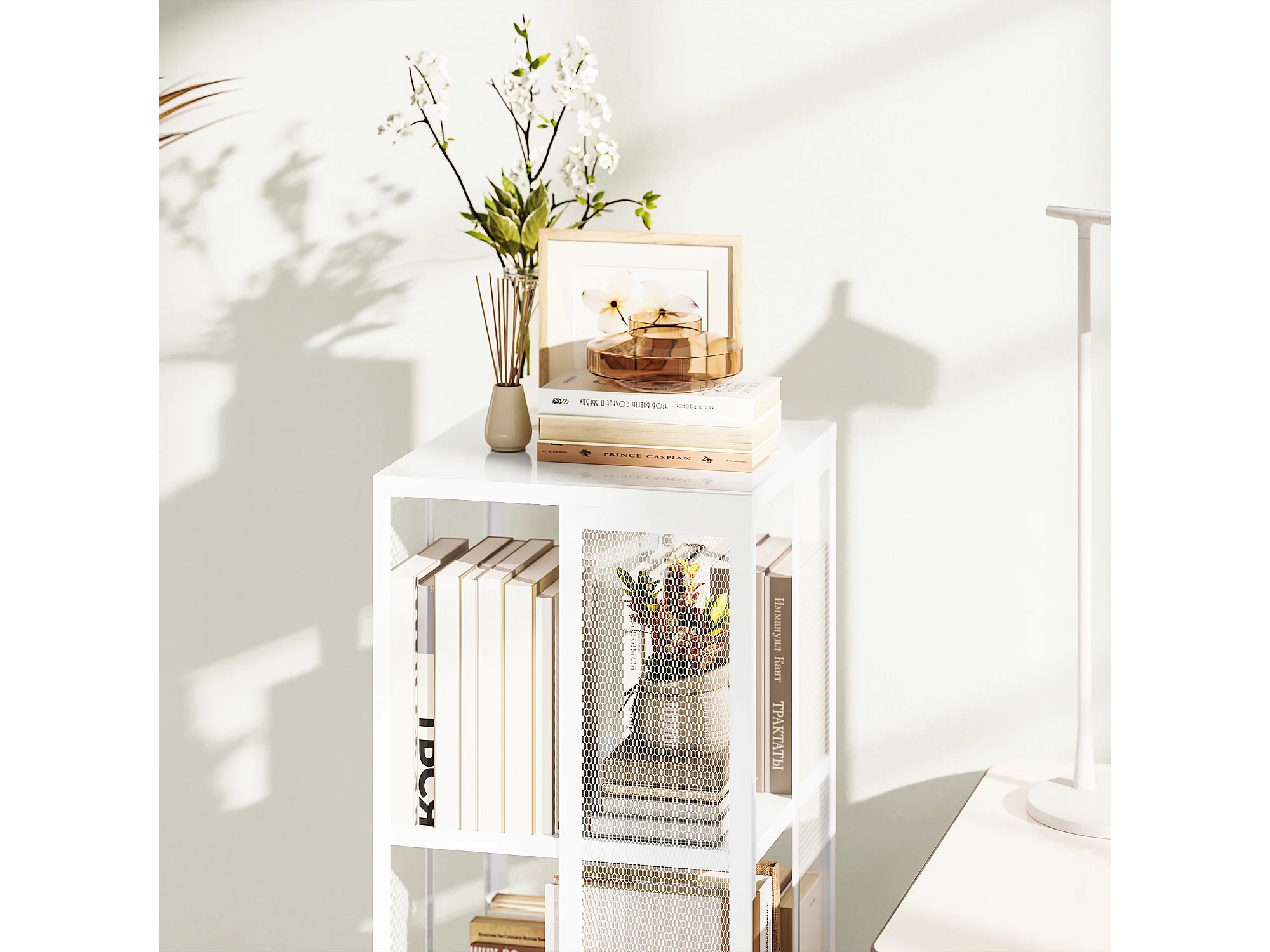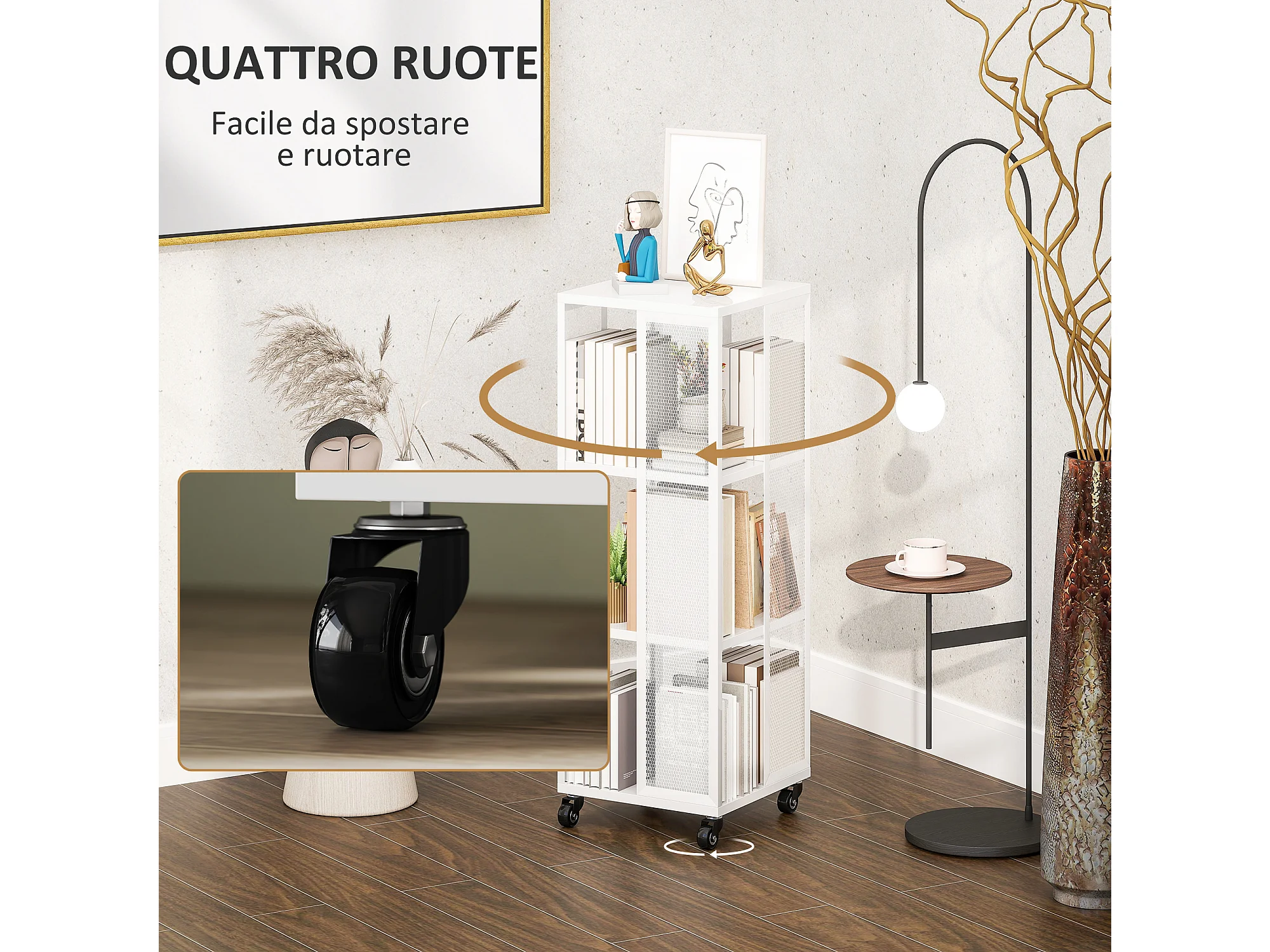 Mobile libreria a 4 ripiani con 2 scaffali flessibili in legno bianco