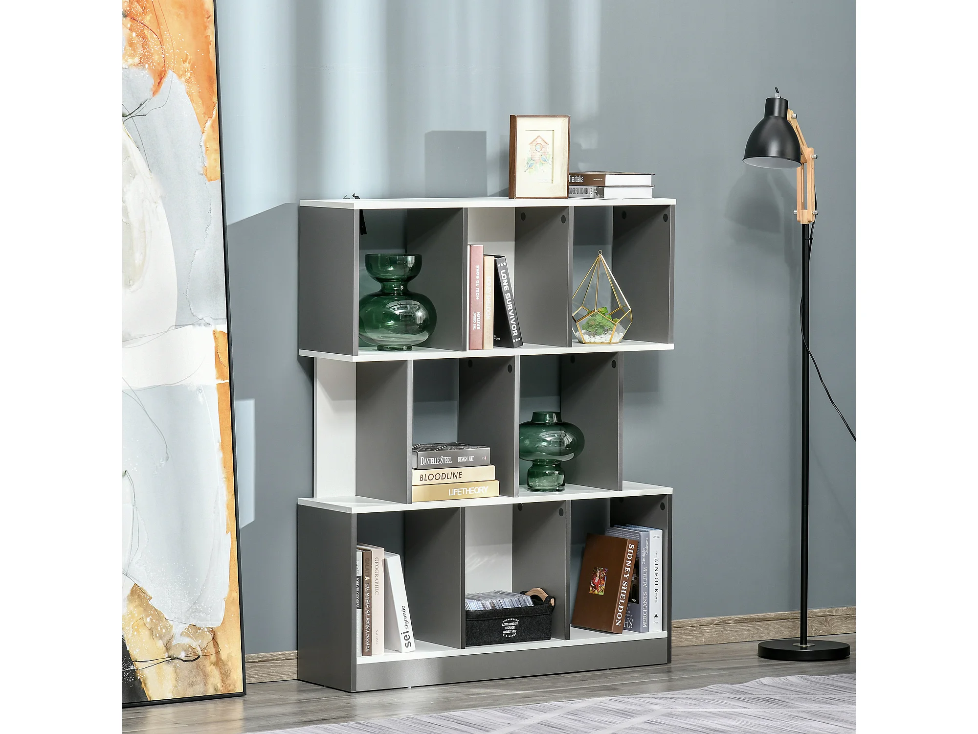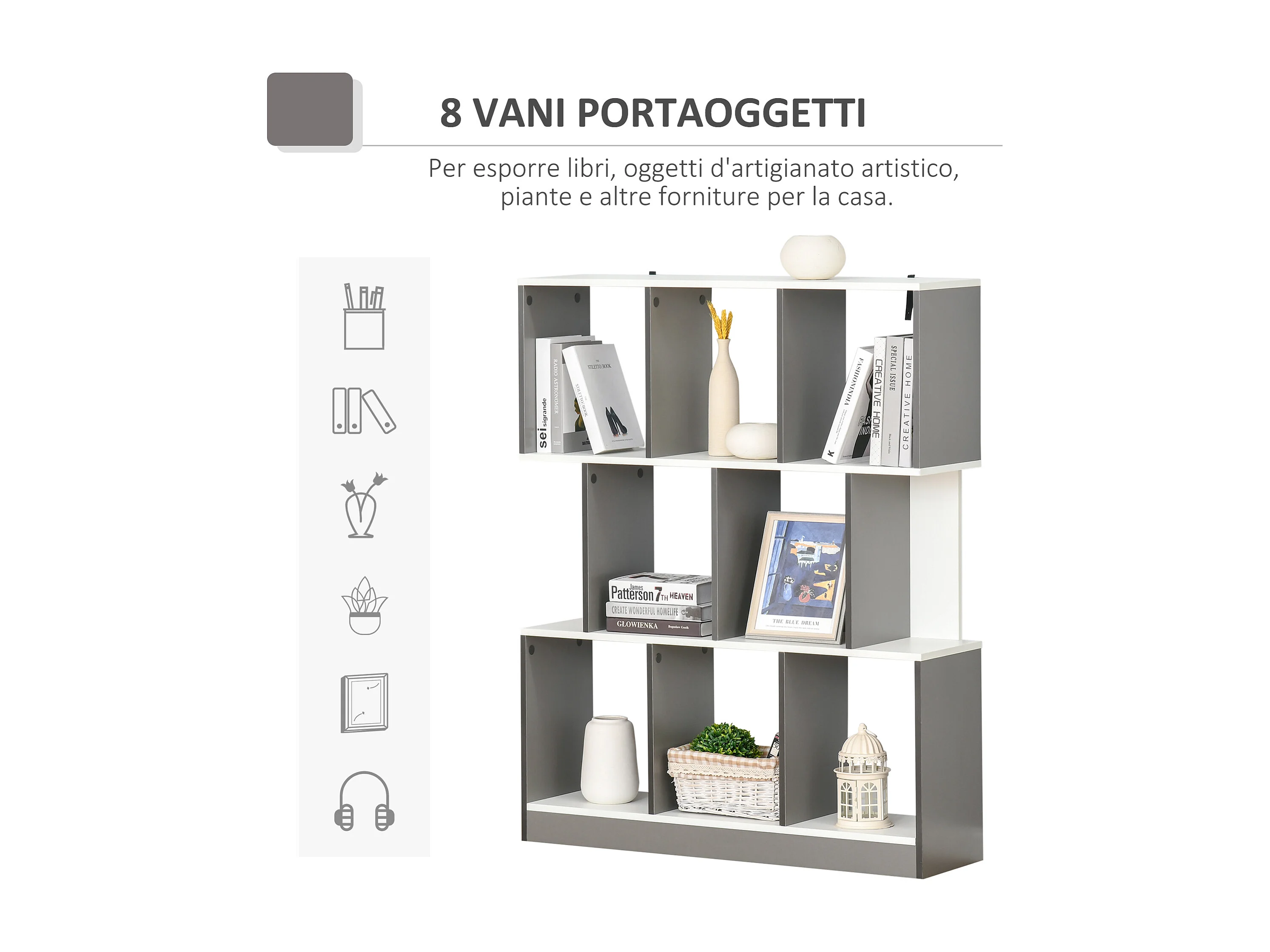 Libreria moderna in legno con 6 ripiani per casa e ufficio
