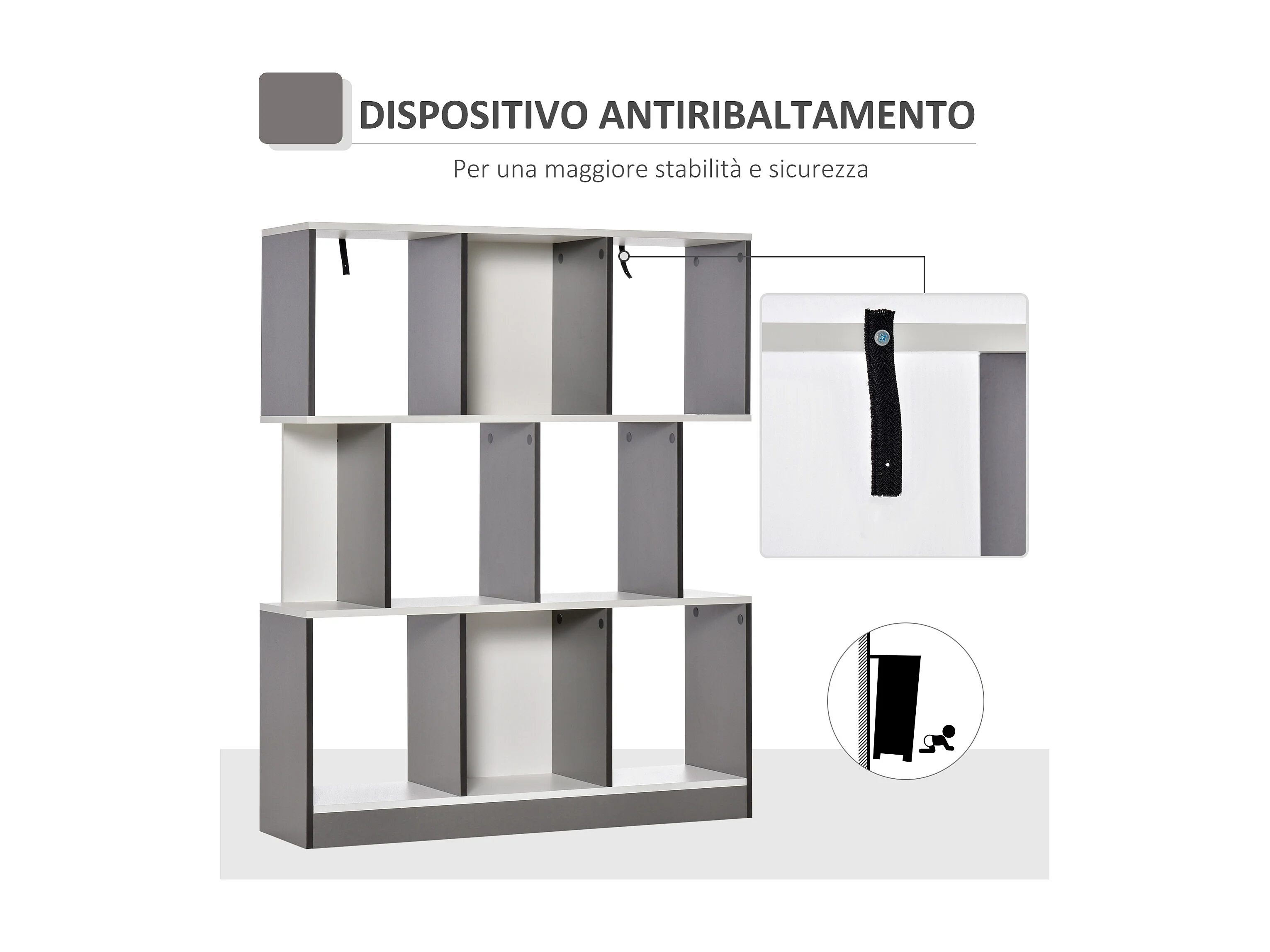 Libreria scaffale a 3 ripiani antiribaltamento in legno