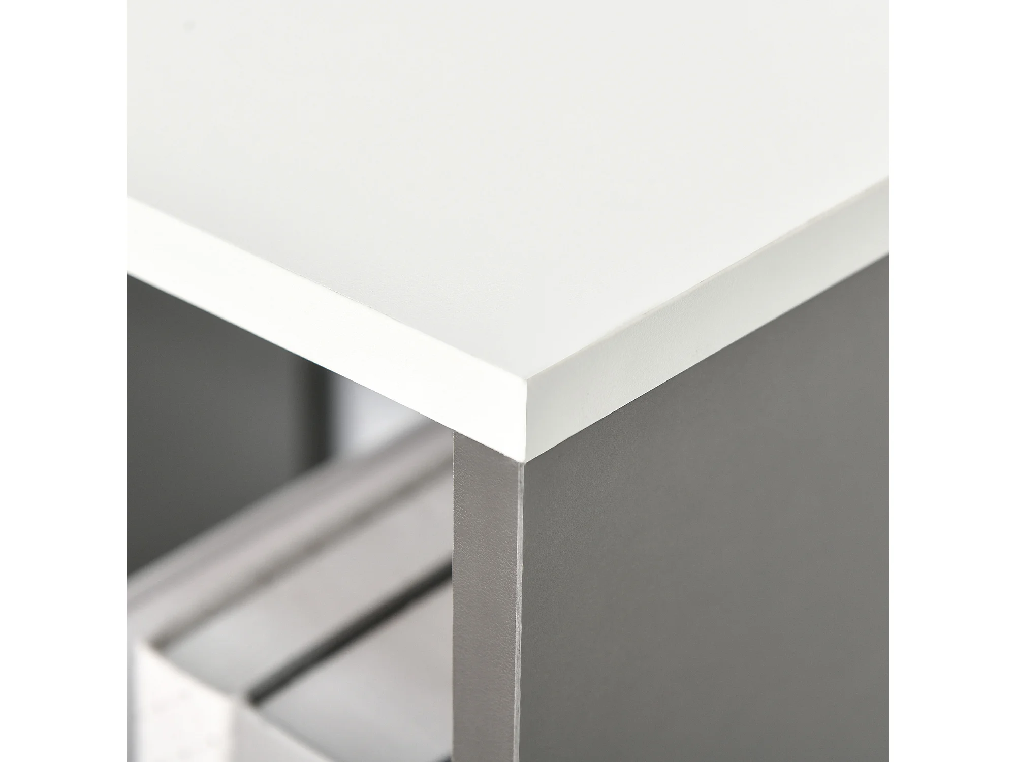 Scaffale angolare MCW-K85 4 ripiani pieghevole legno intreccio 110cm ~ bianco grigio