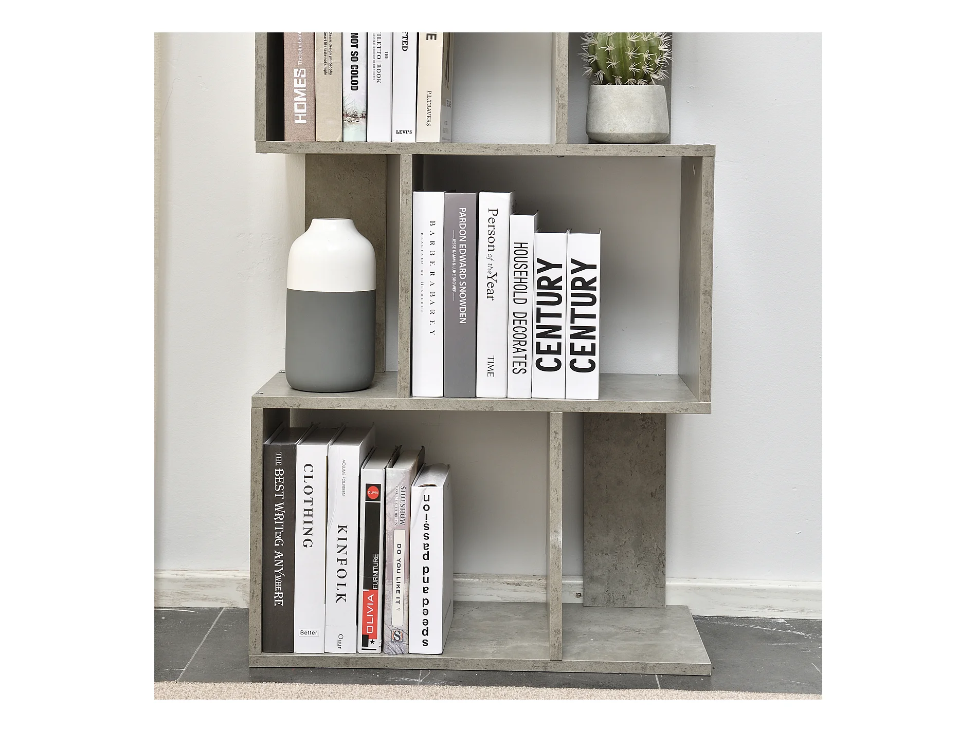 Libreria Design Zig Zag Scaffale Mensola Moderna 6 Vani A Giorni E Ripiani Mobile per Libri per Soggiorno Salotto Camera Studio 143 x 144.9 x 27.9 Cm Grigio Cemento