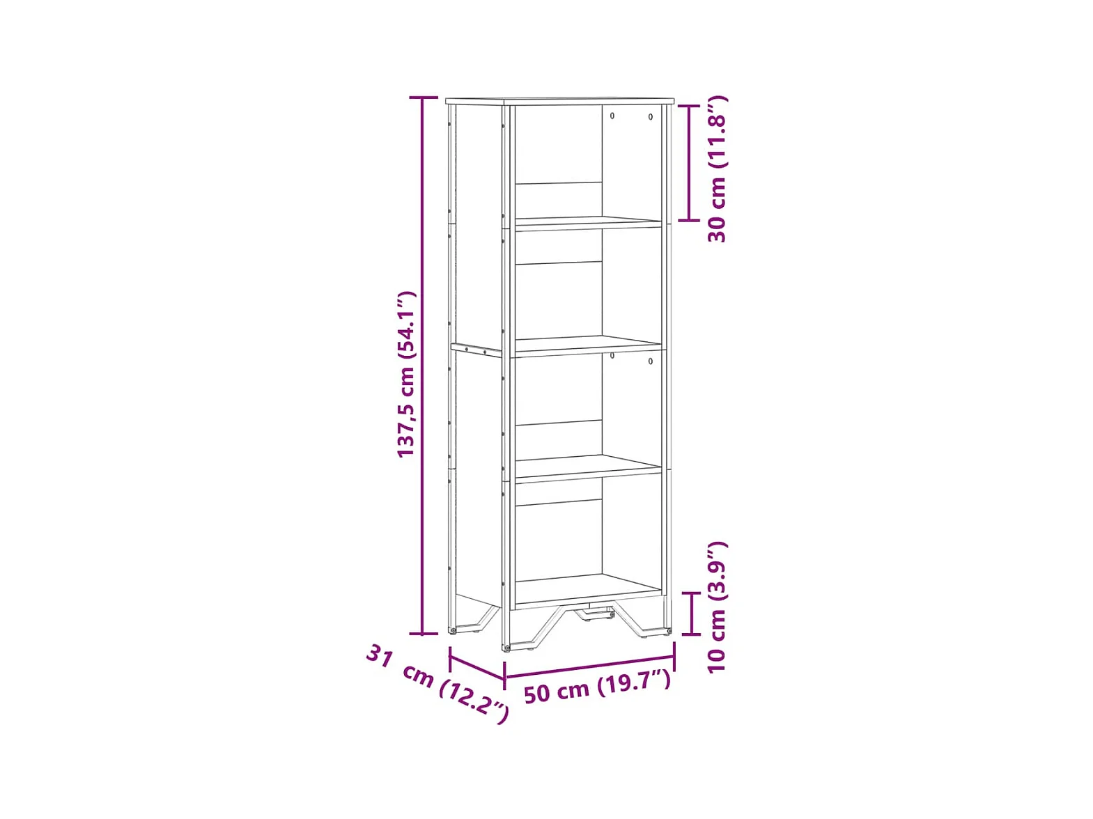 Libreria Nera 50x31x74,5 cm in Legno Multistrato