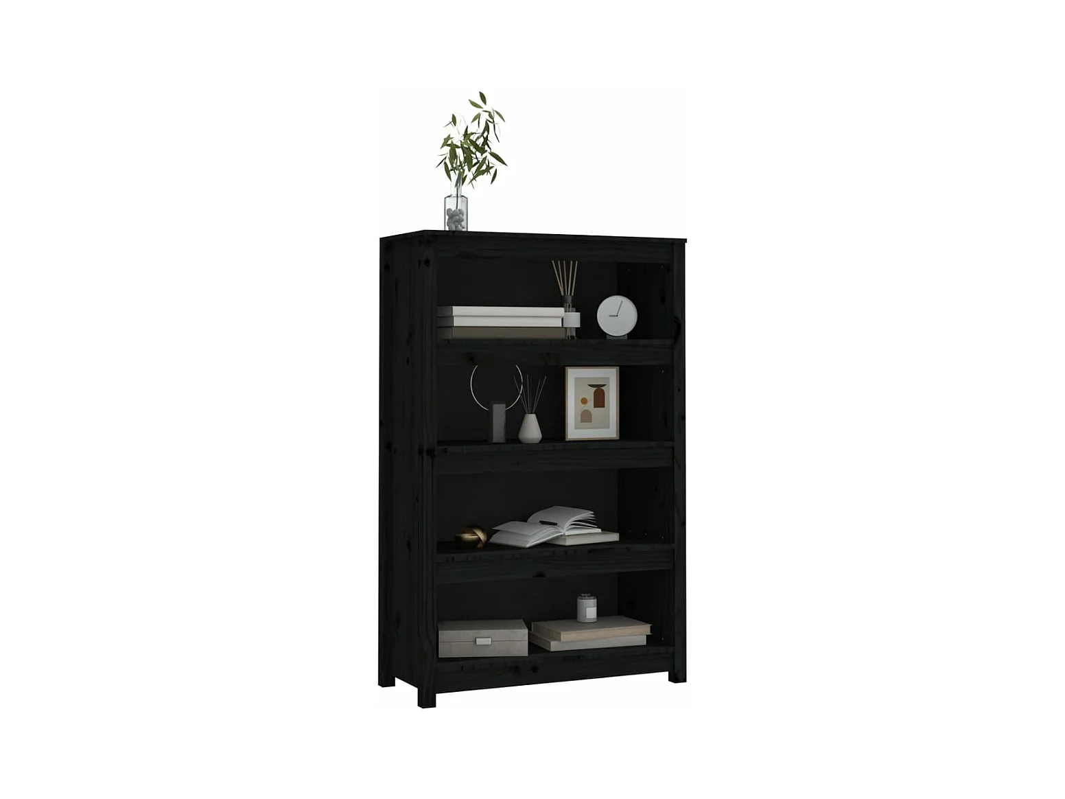 Libreria Nera 80x35x126 cm in Legno Massello di Pino