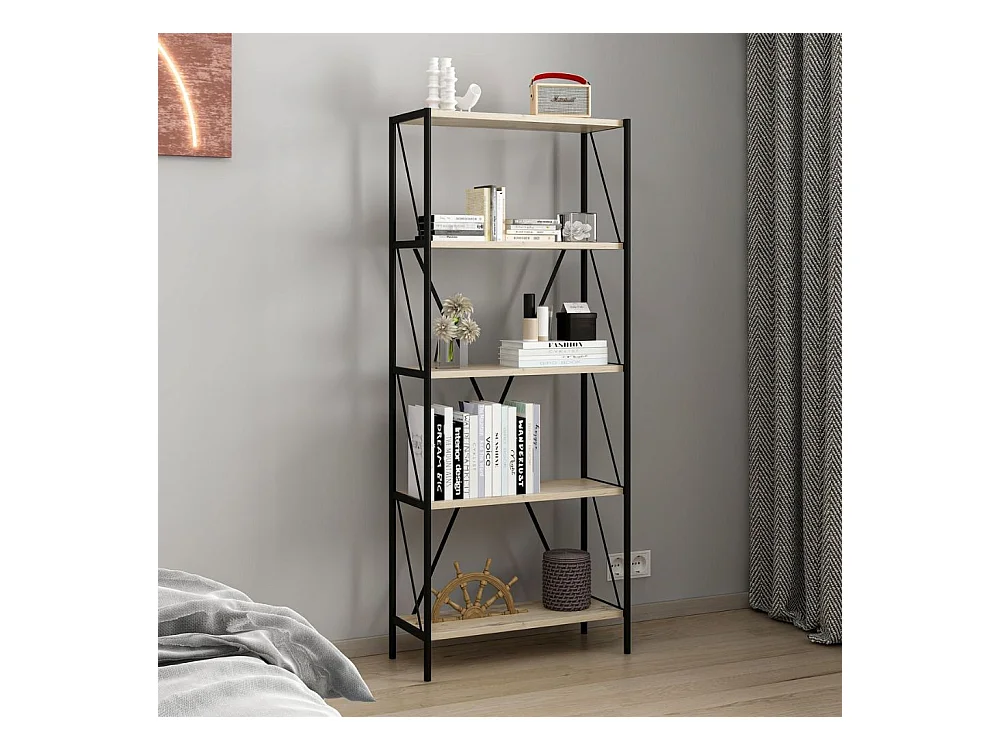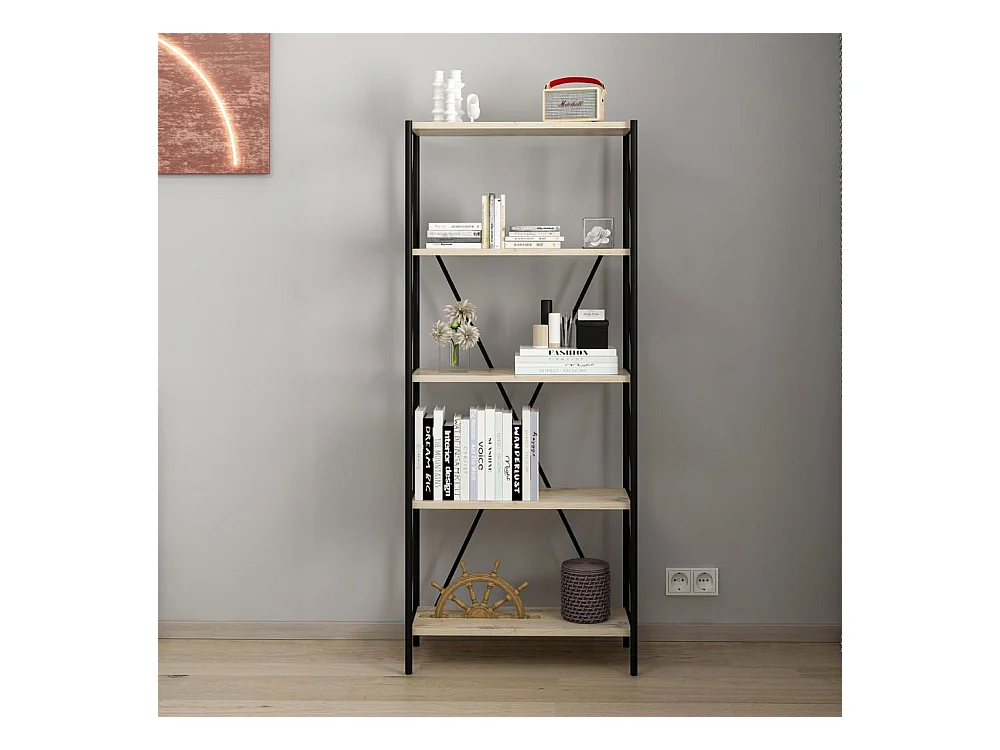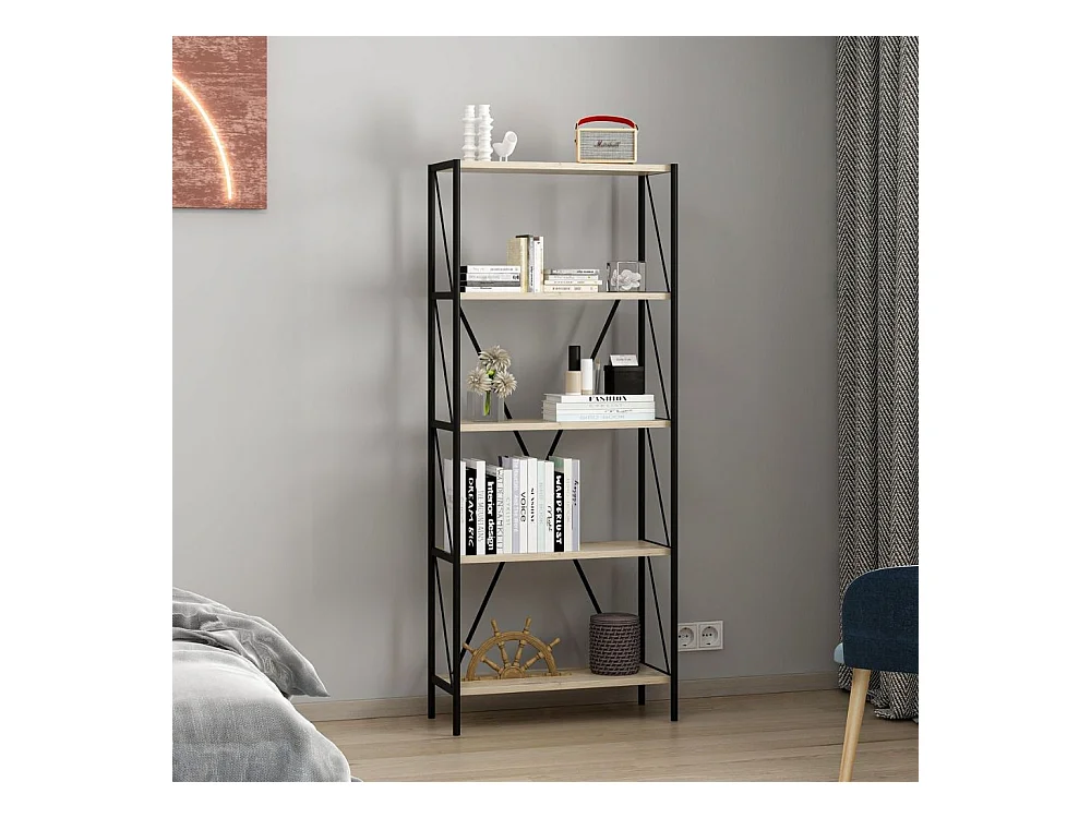 Libreria nera e rovere Axel 62x26x150H – Stile industriale e funzionalità per ogni ambiente
