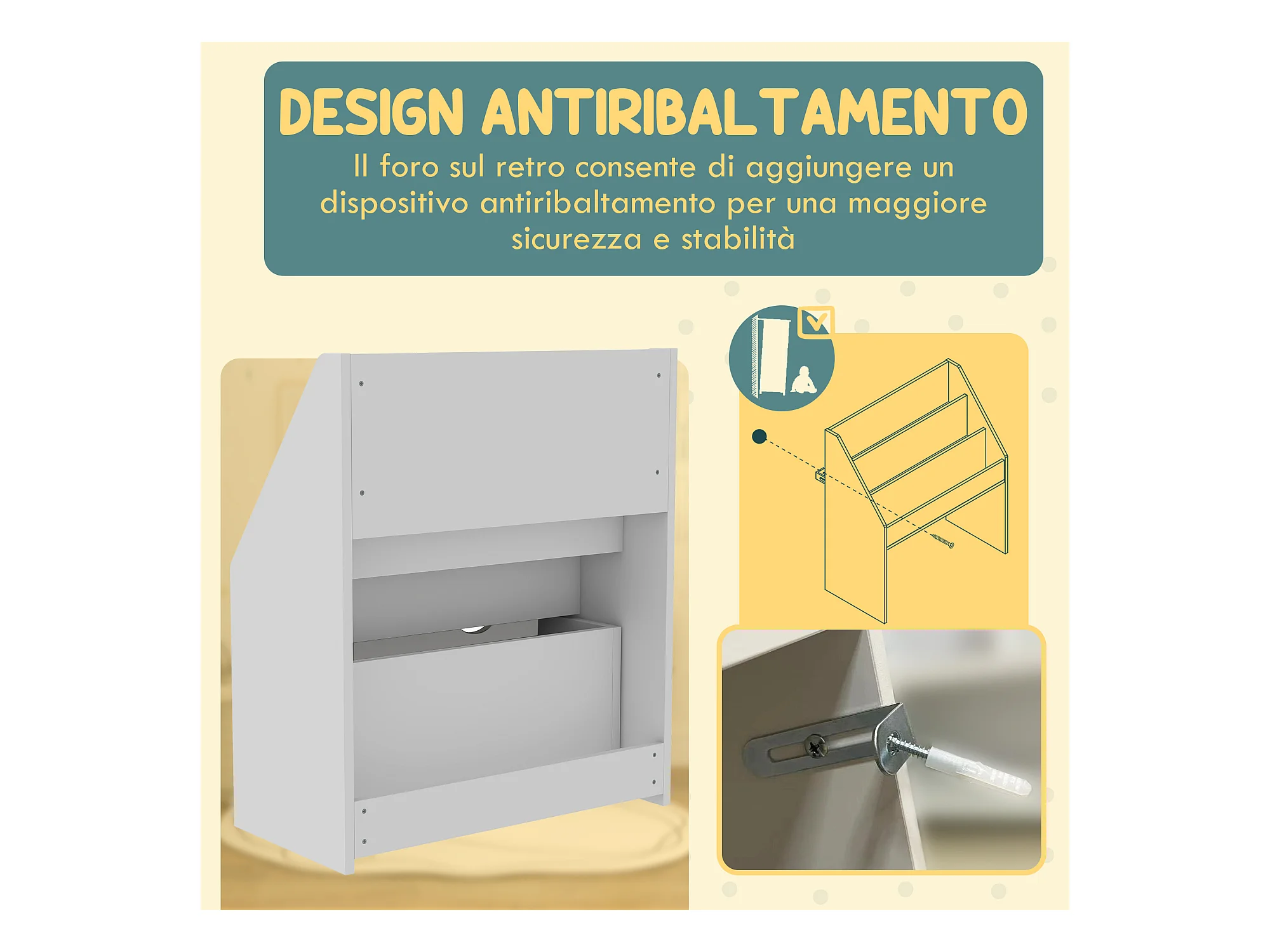 Libreria per bambini a 3 ripiani con cassetto inferiore in mdf bianco