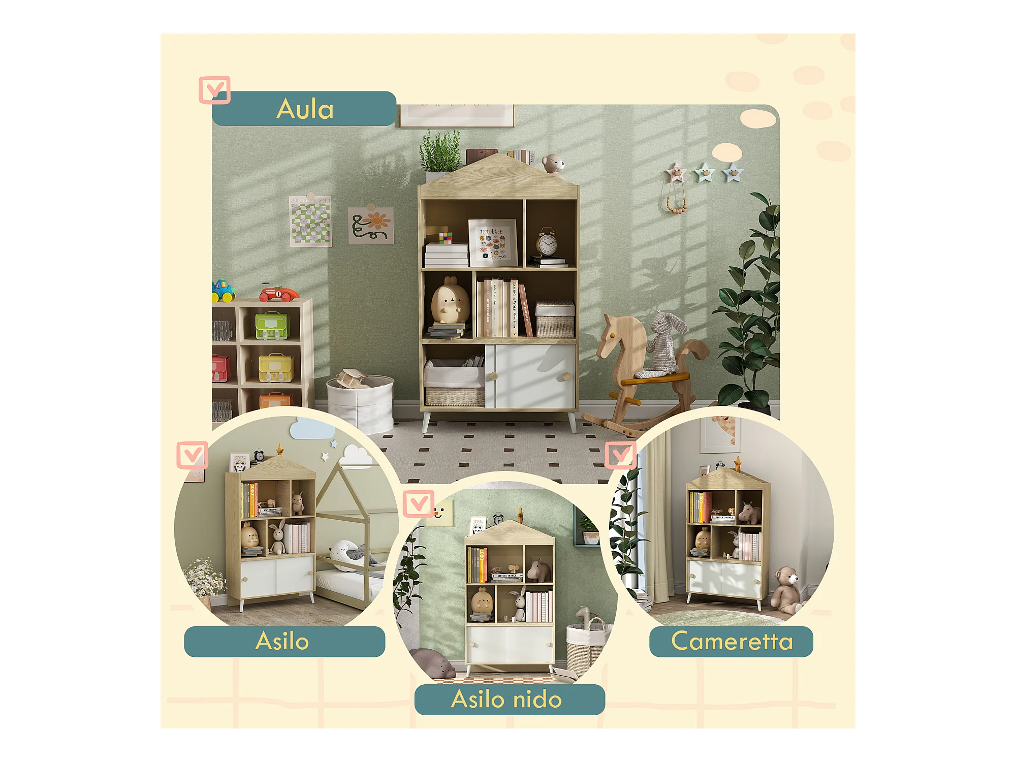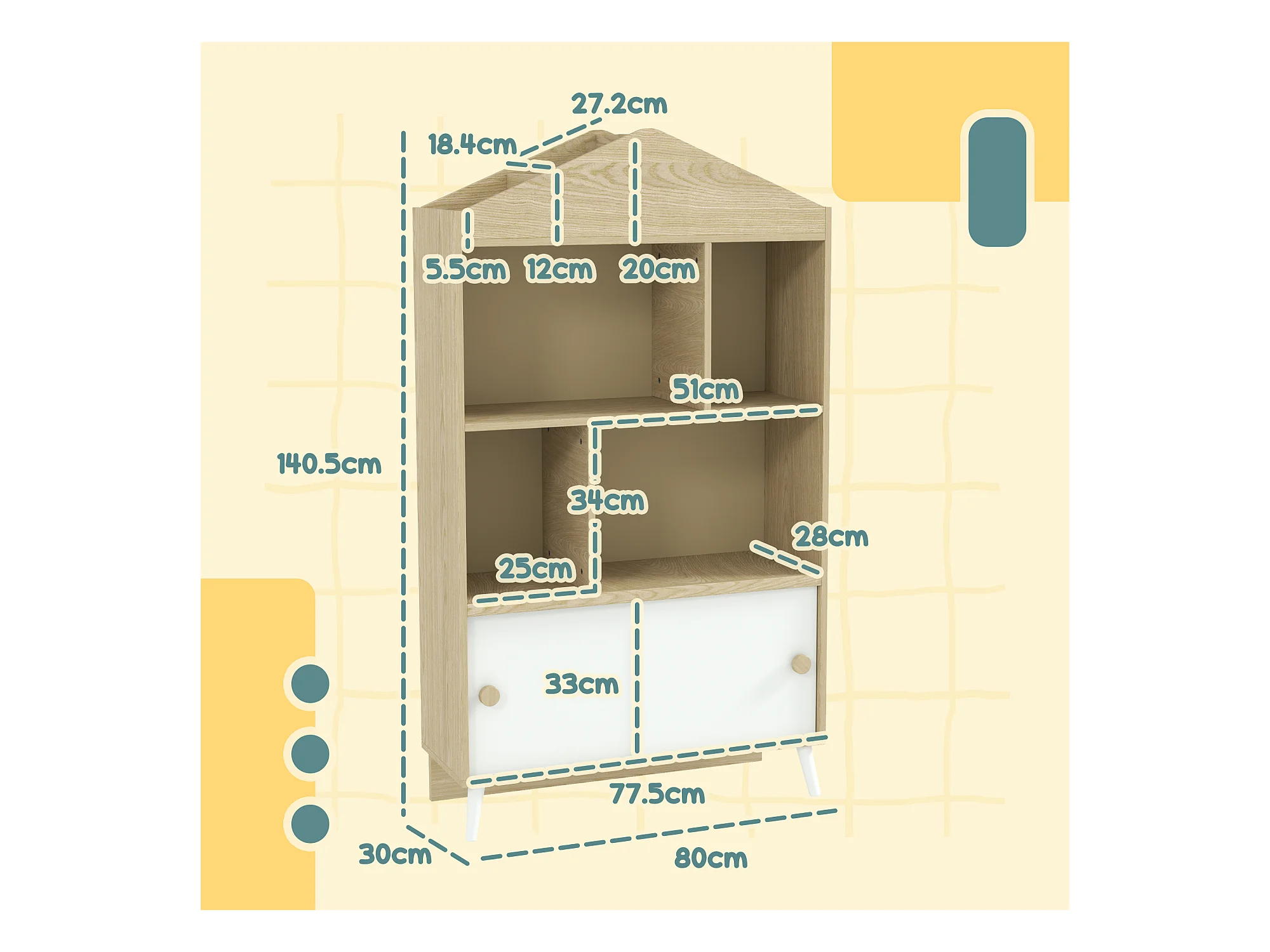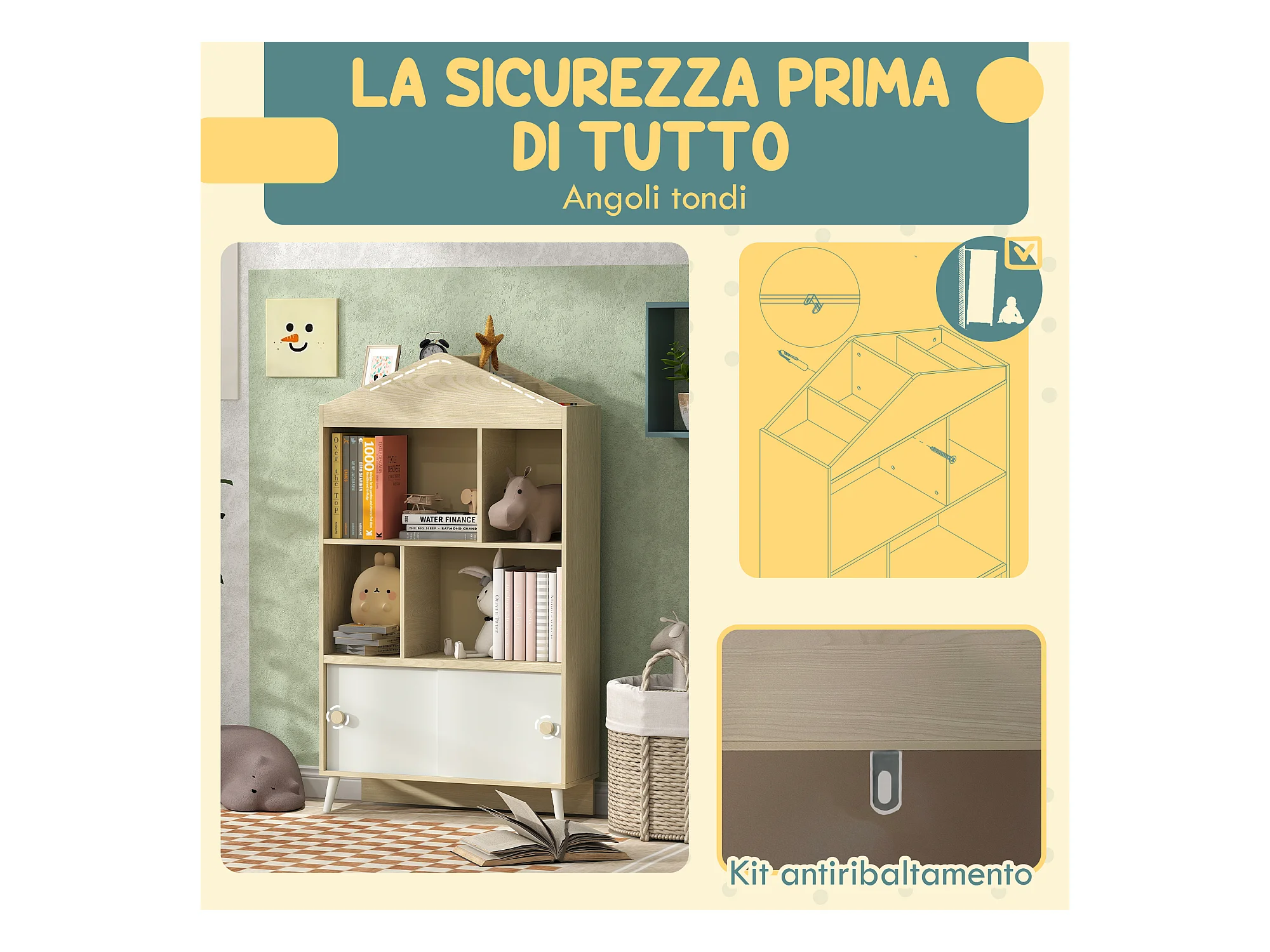 Libreria per bambini con ripiani aperti armadietto inferiore in legno