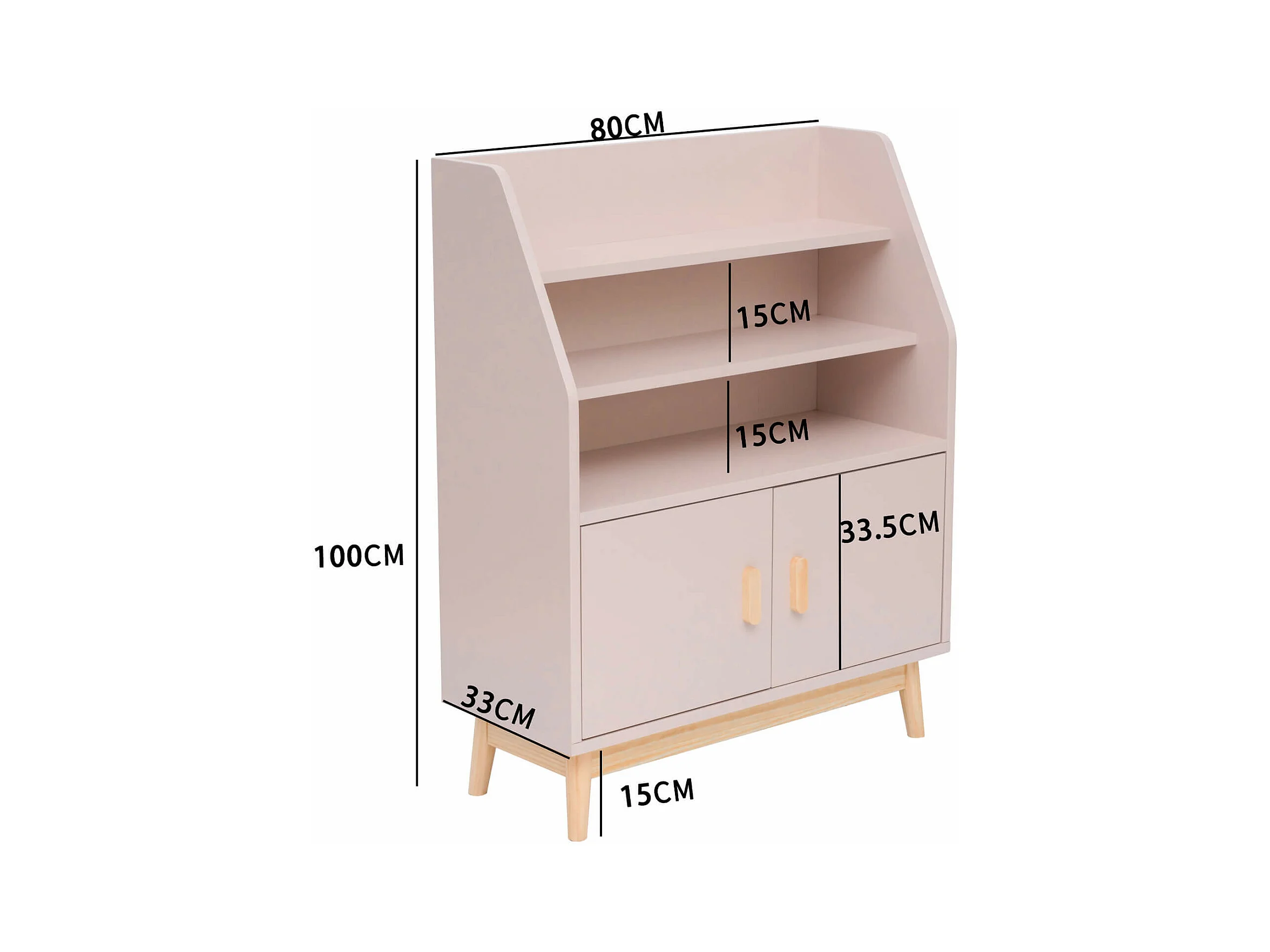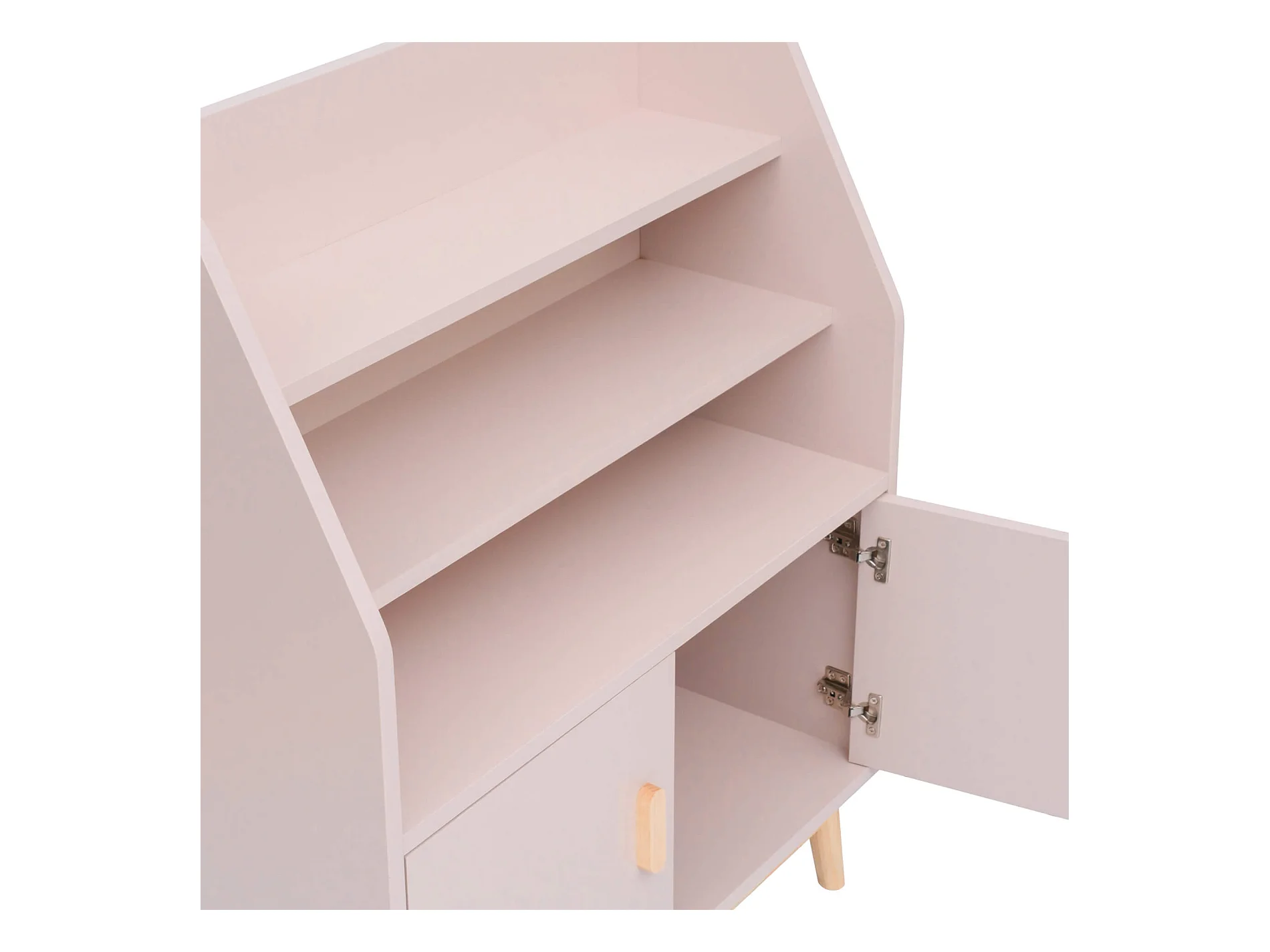 Biblioteca per bambini in legno di pino 2 porte e 4 scaffali, rosa
