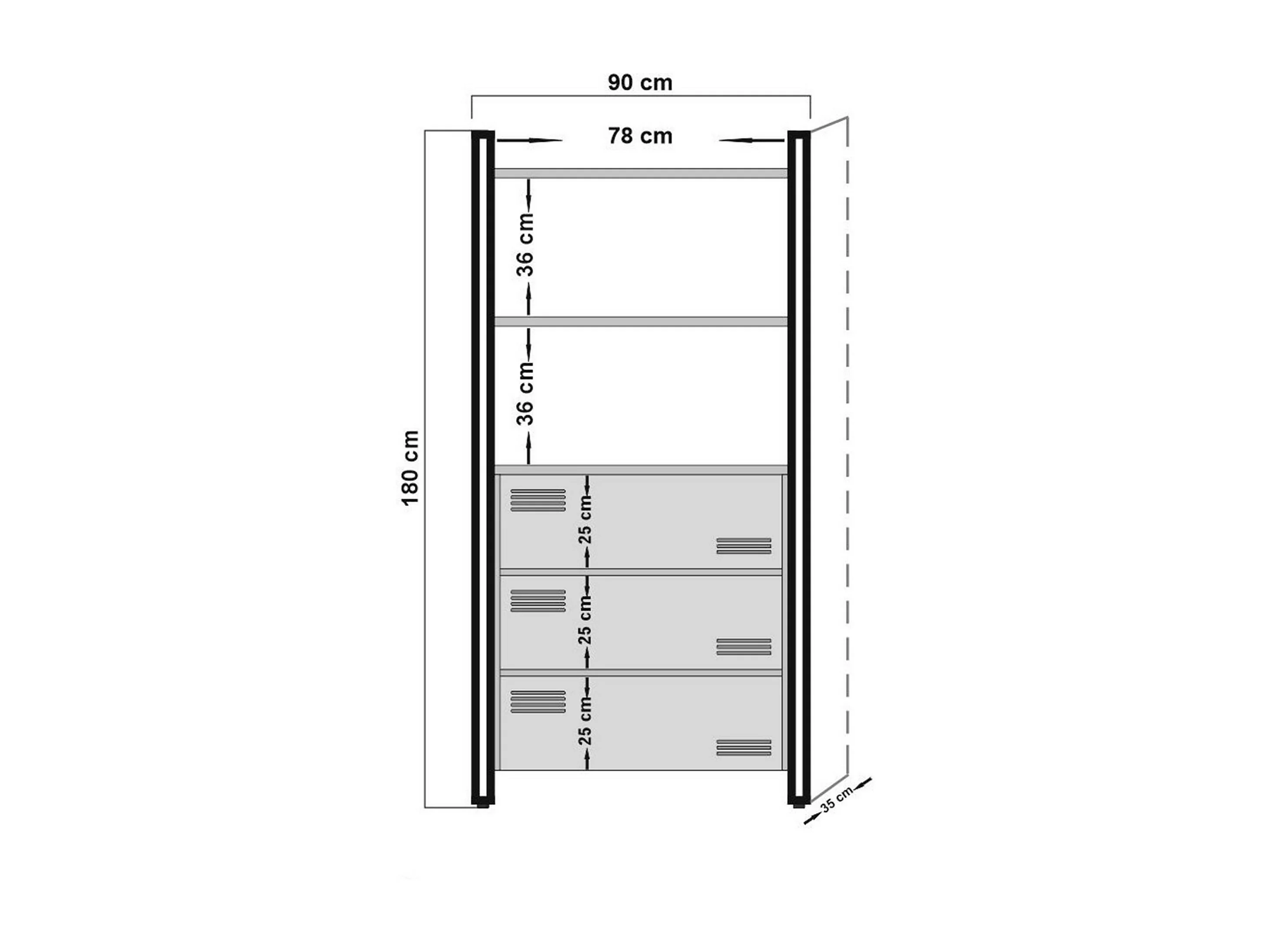 Libreria Podul, 3 Cassetti, 35x90x180h cm Marrone, Biblioteca