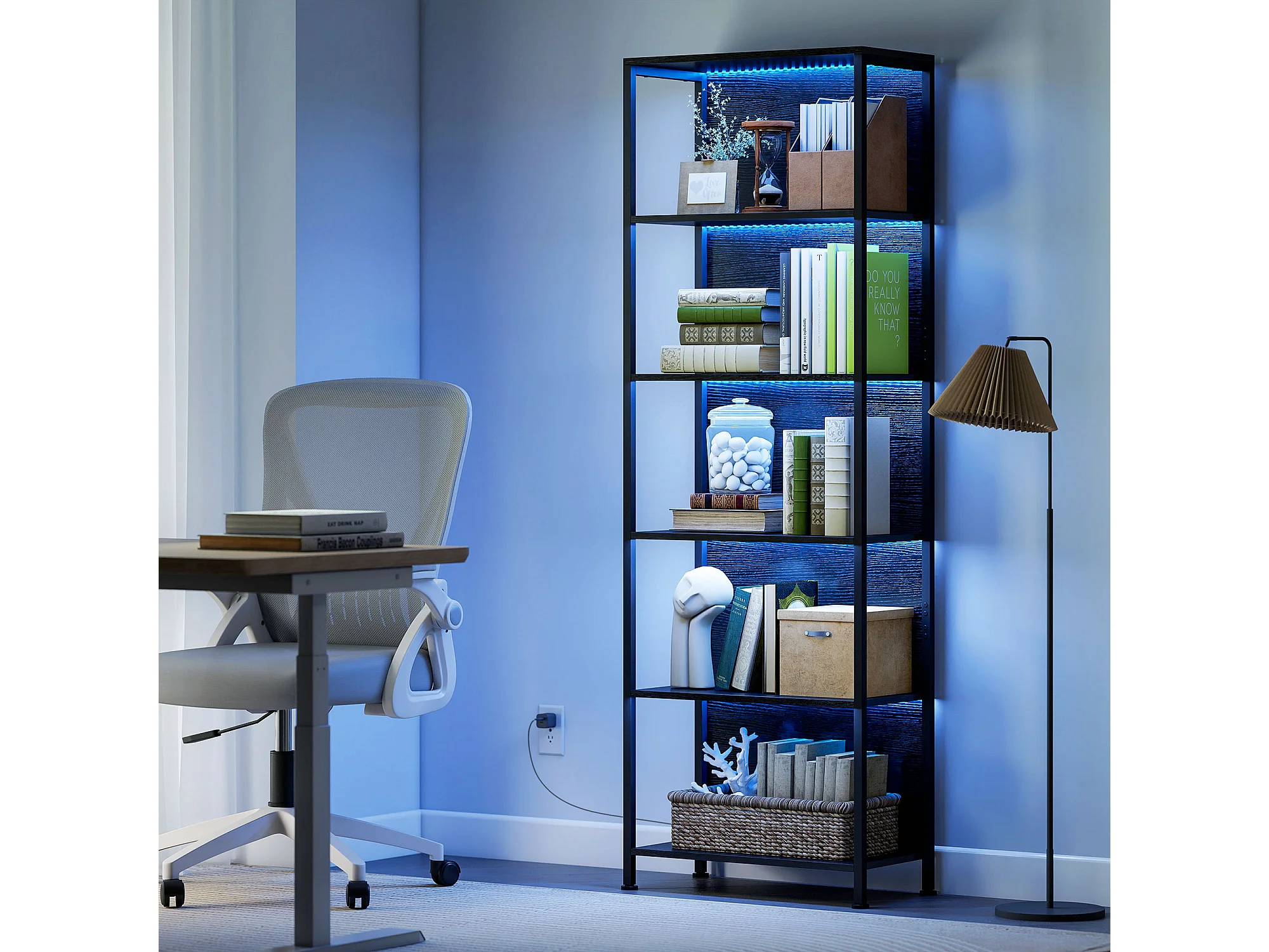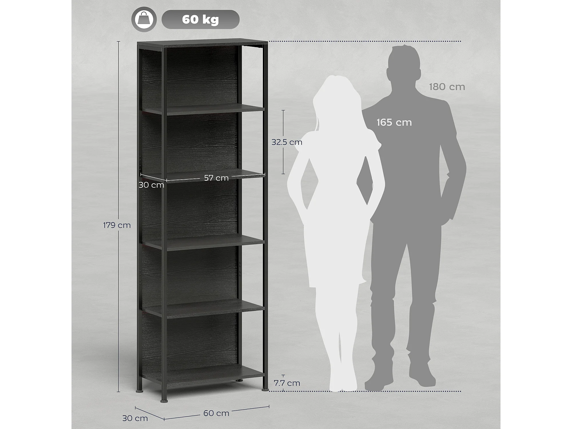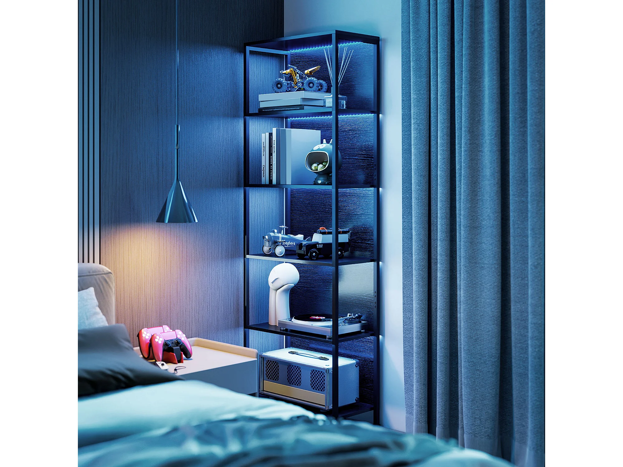 Libreria scaffale industriale a 5 livelli con illuminazione led nero