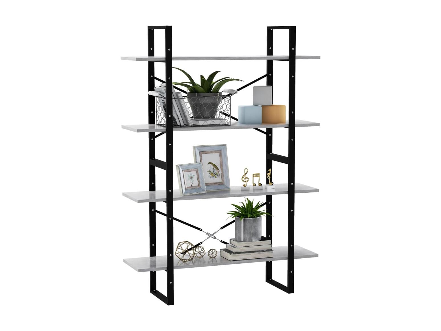 Libreria | Scaffale | Mobile di stoccaggio 4Ripiani Grigio Cemento 100x30x140cm Legno Multistrato