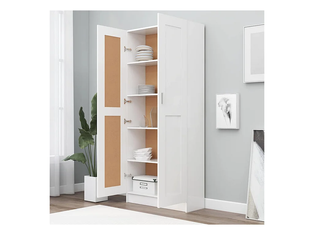 Libreria | Scaffale | Mobile di stoccaggio Bianco Lucido 82,5x30,5x185,5 cm in Legno Multistrato