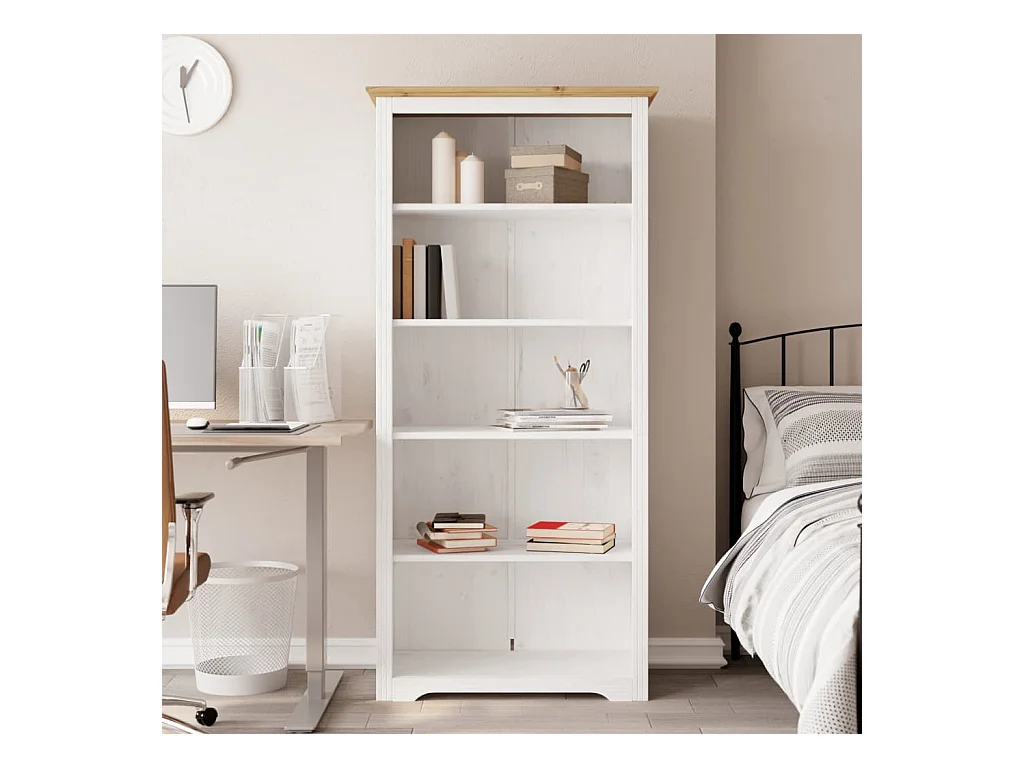 Libreria | Scaffale | Mobile di stoccaggio BODO 82x40x173 cm Legno Massello Pino Bianco e Marrone