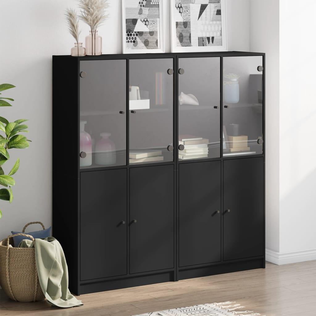 Libreria | Scaffale | Mobile di stoccaggio con Ante Nera 136x37x109 cm in Legno Multistrato