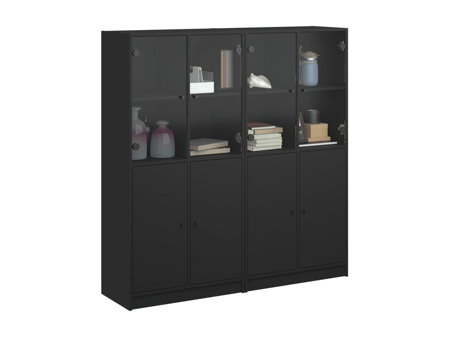 Libreria | Scaffale | Mobile di stoccaggio con Ante Nera 204x37x75 cm in Legno Multistrato