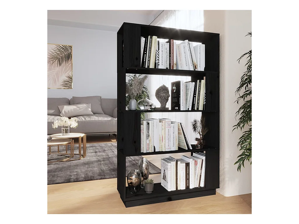 Libreria | Scaffale | Mobile di stoccaggio Divisorio Nero 80x35x103 cm in Legno Massello di Pino