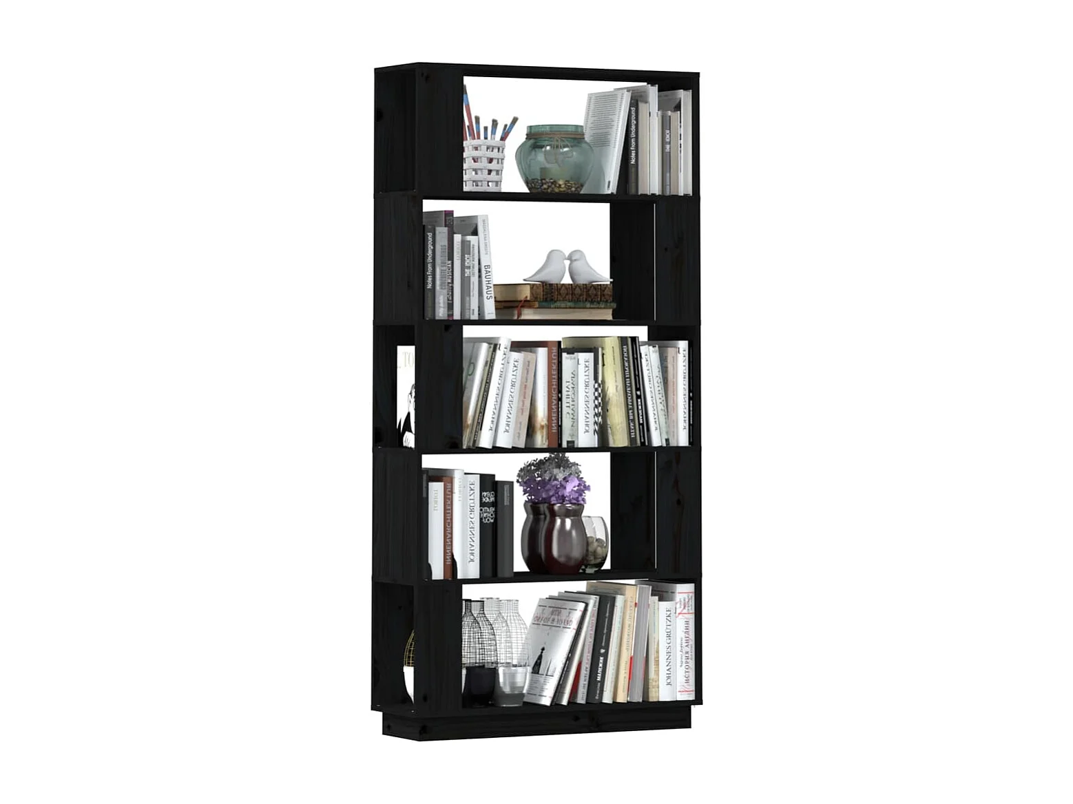 Libreria | Scaffale | Mobile di stoccaggio Divisorio Nero 80x30x103,5cm in Legno Massello di Pino