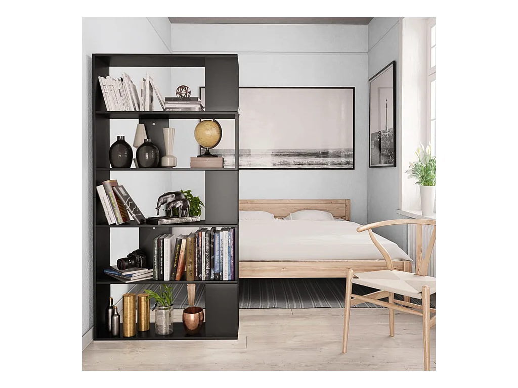 Libreria | Scaffale | Mobile di stoccaggio Divisorio Nero 80x24x186 cm in Truciolato