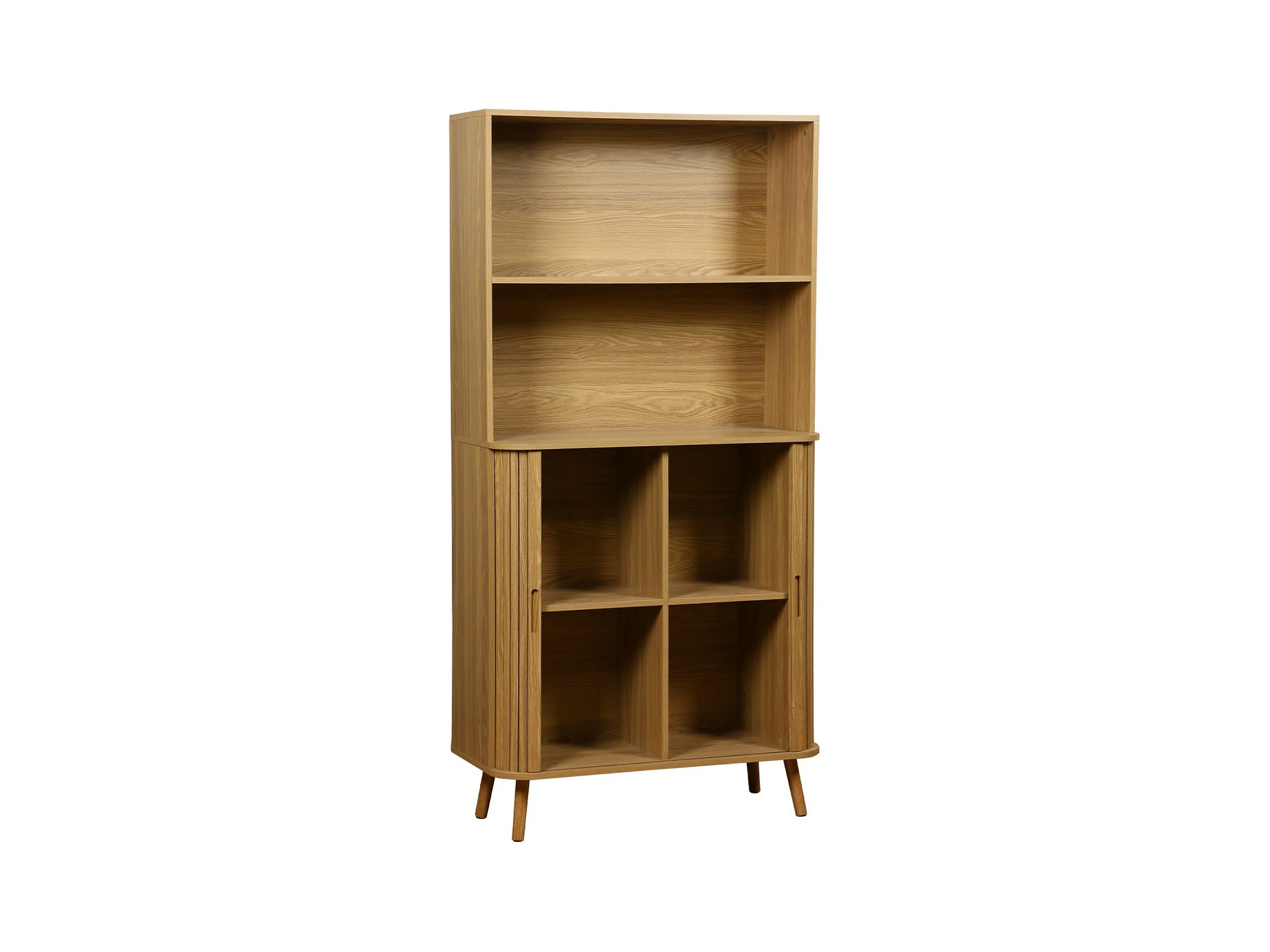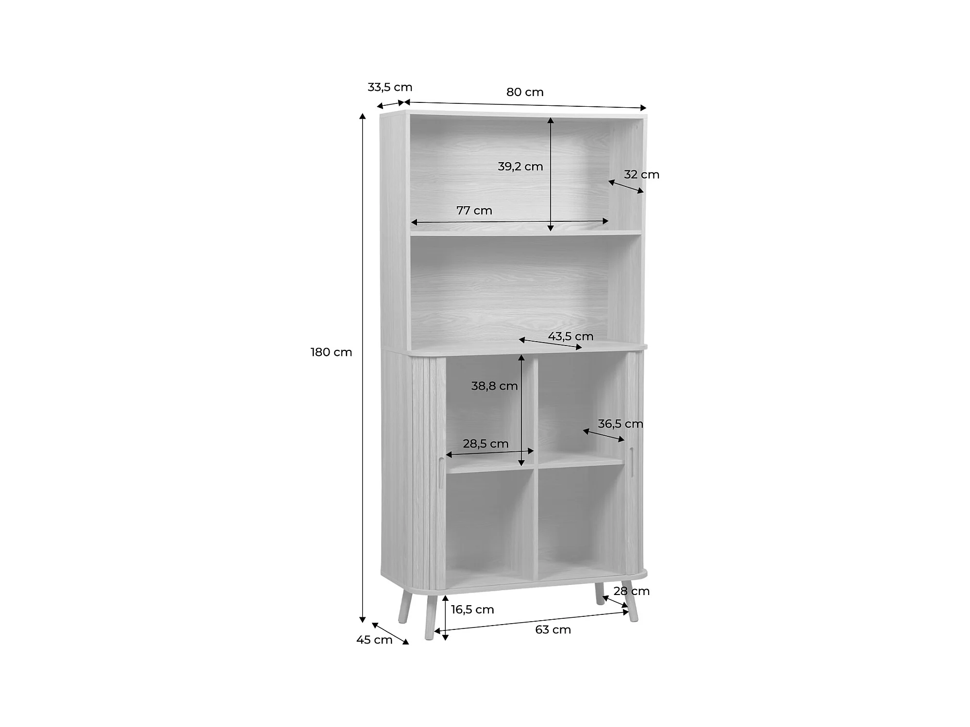 Scaffale libreria decorativo in legno scanalato 2 ante scorrevoli 4