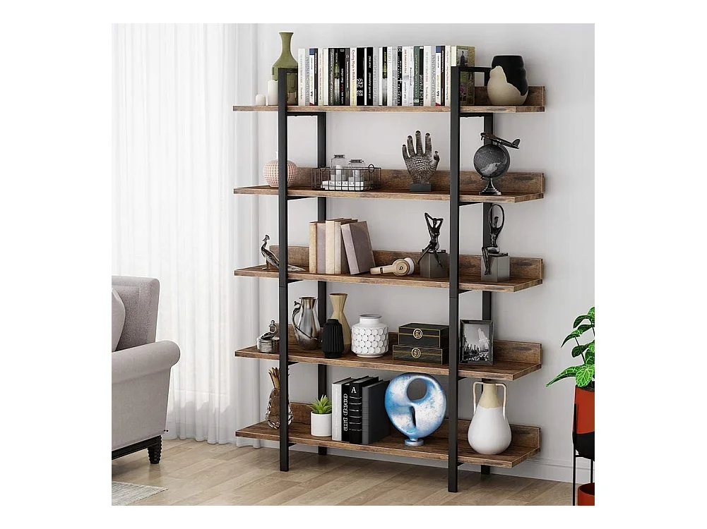 Libreria vintage a 5 ripiani - Grande scaffale portaoggetti con foglio guida per soggiorno, scaffale per piante, scaffale per cucina