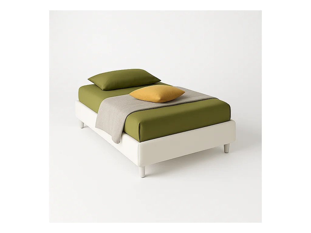 Lido, Letto a Una Piazza E Mezza Con Contenitore Rivestimento Vegan Leather Easy Clean Bianco (135cm X 220cm X 36cm)| Duzzle
