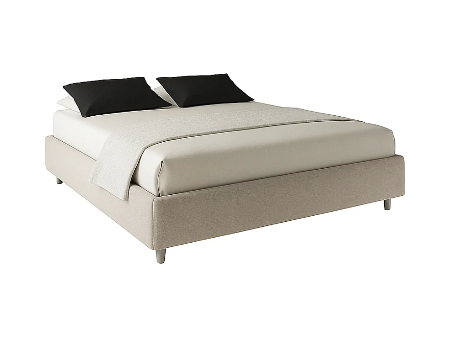 Lido, Letto Matrimoniale Con Contenitore Rivestimento Tessuto Idrorepellente Beige (175cm X 220cm X 36cm)| Duzzle