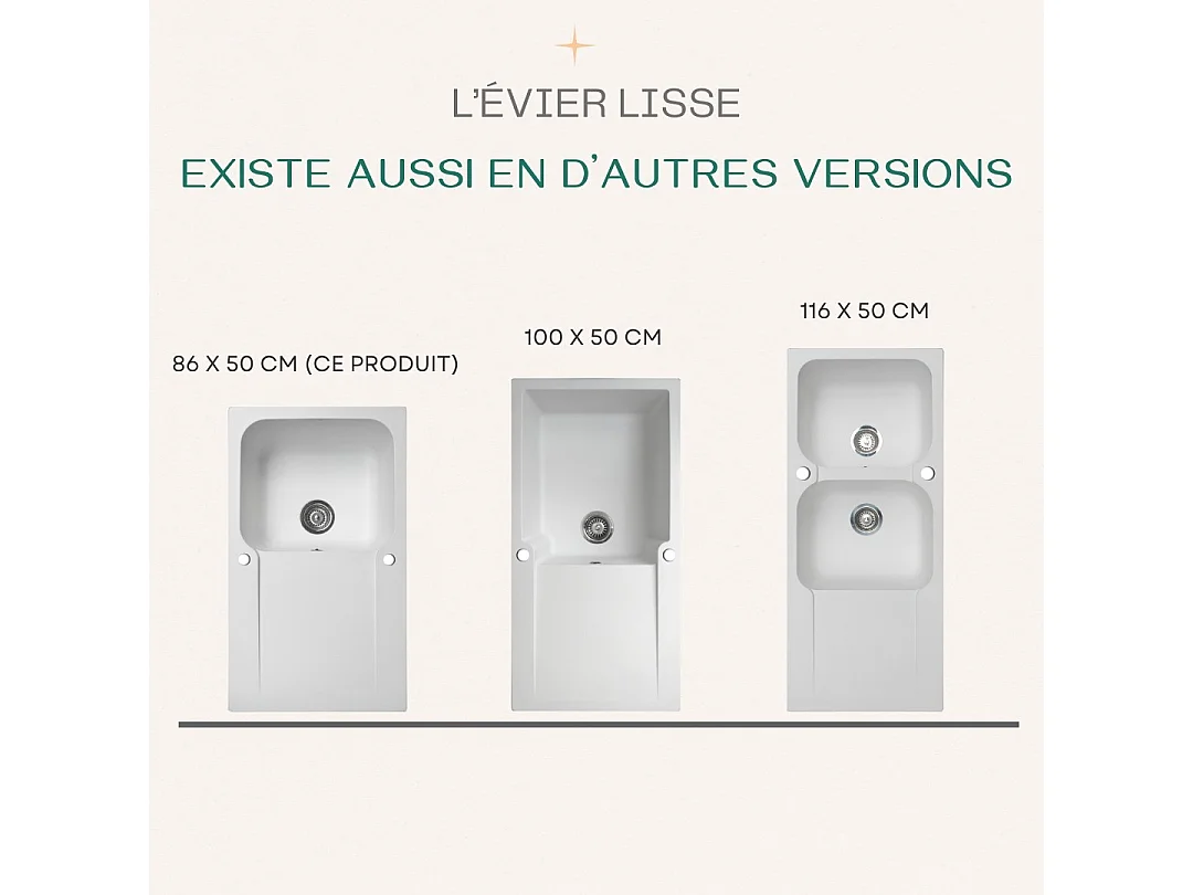 Lisse lavello reversibile 1 vasca 1 sgocciolatoio in resina bianca Essebagno