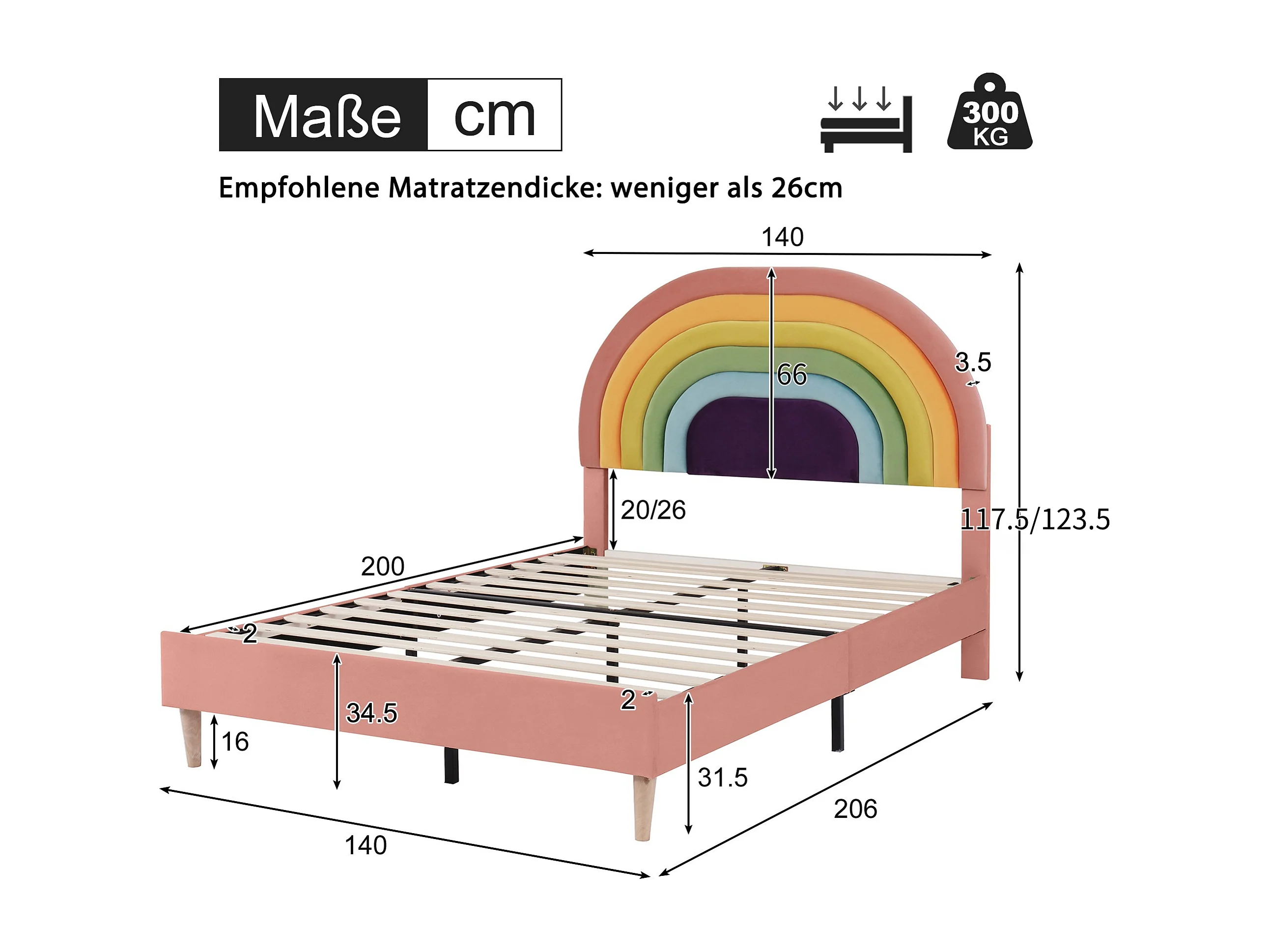 Lit 140x200 cm velours rose con tête de lit réglable et sommier à lattes, adulte et teenager