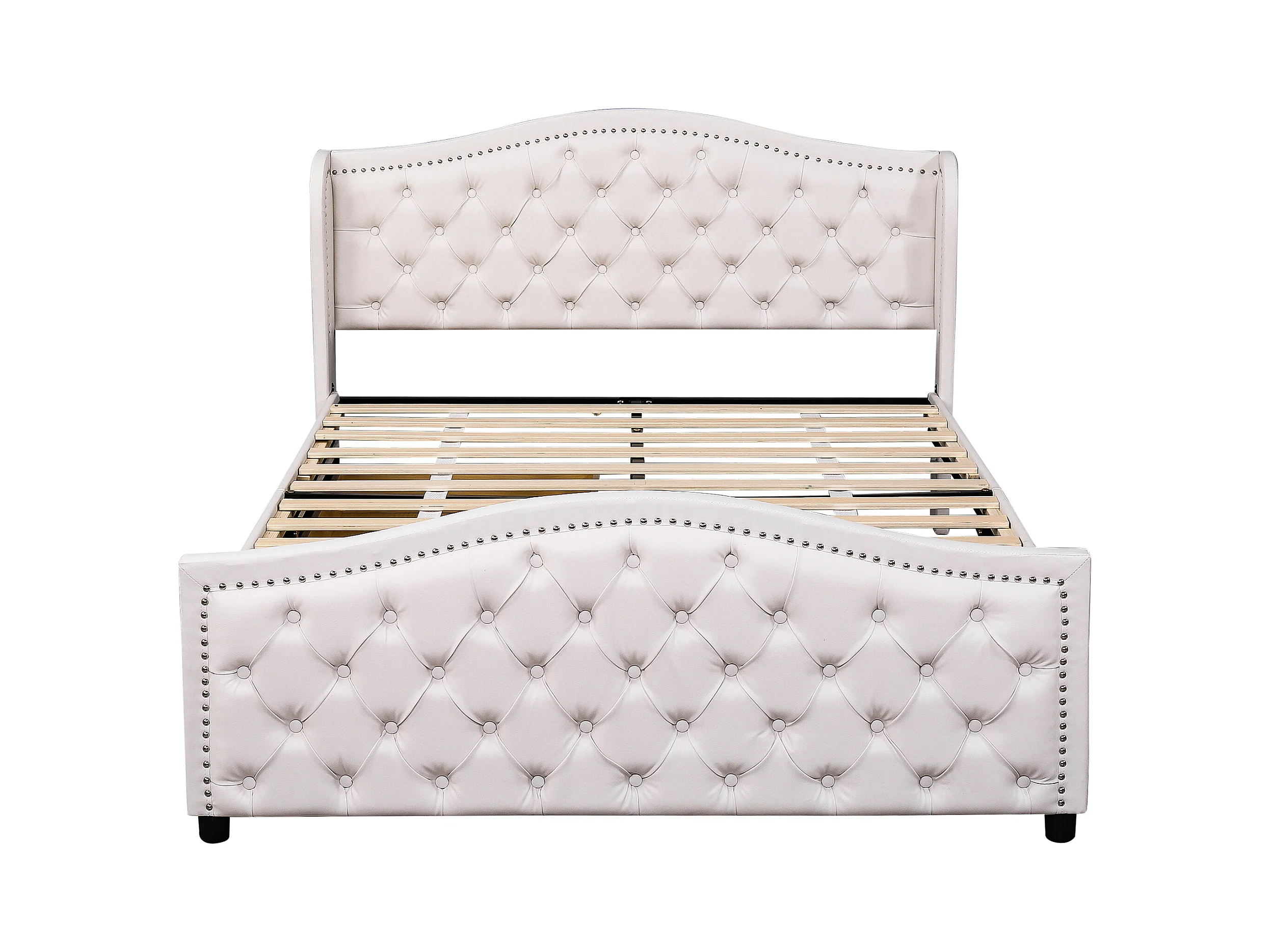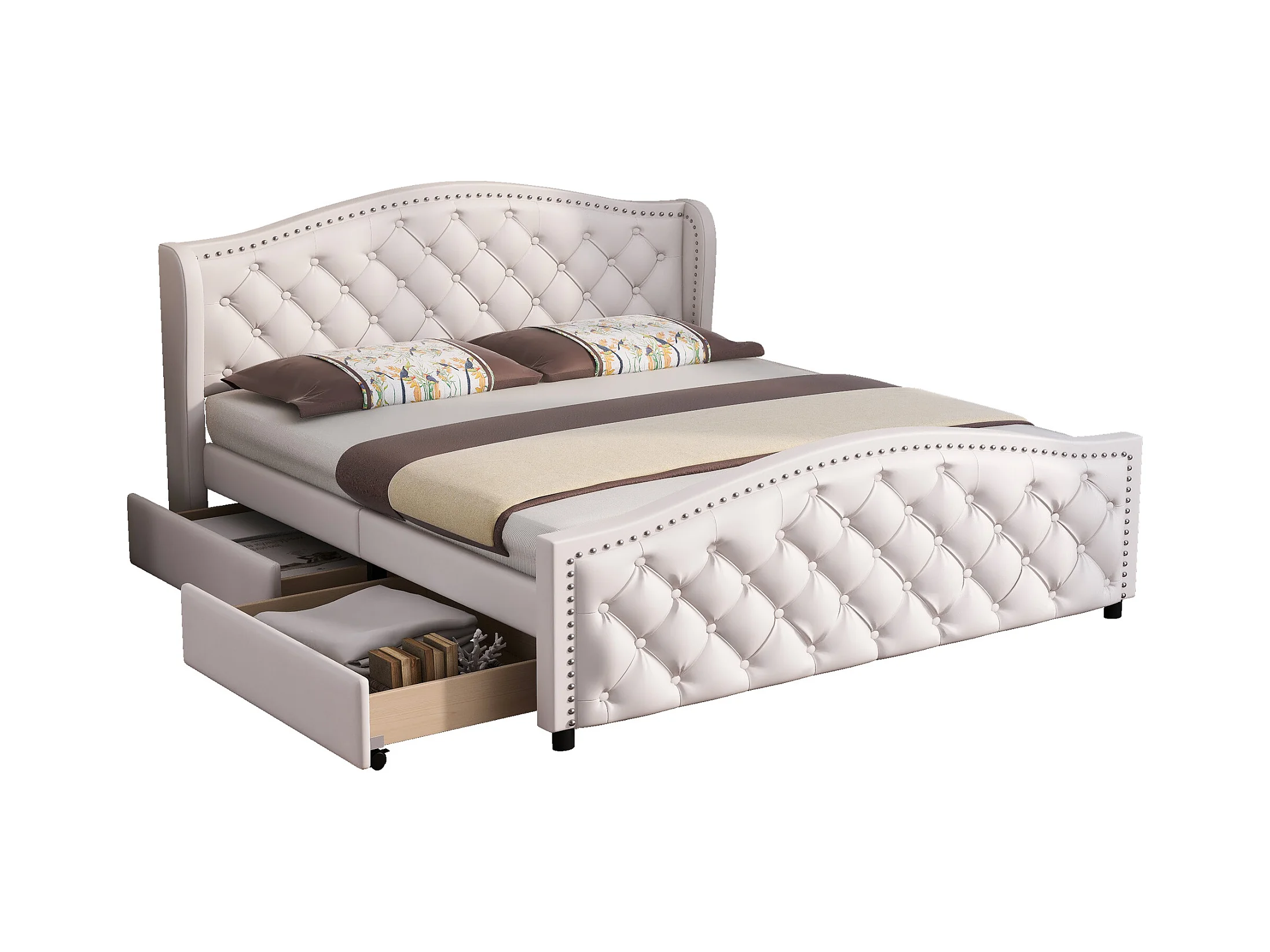 Letto matrimoniale 160 x 200 con 4 cassetti, Letto imbottito 160 x 200 con ricarica USB, PU, Beige