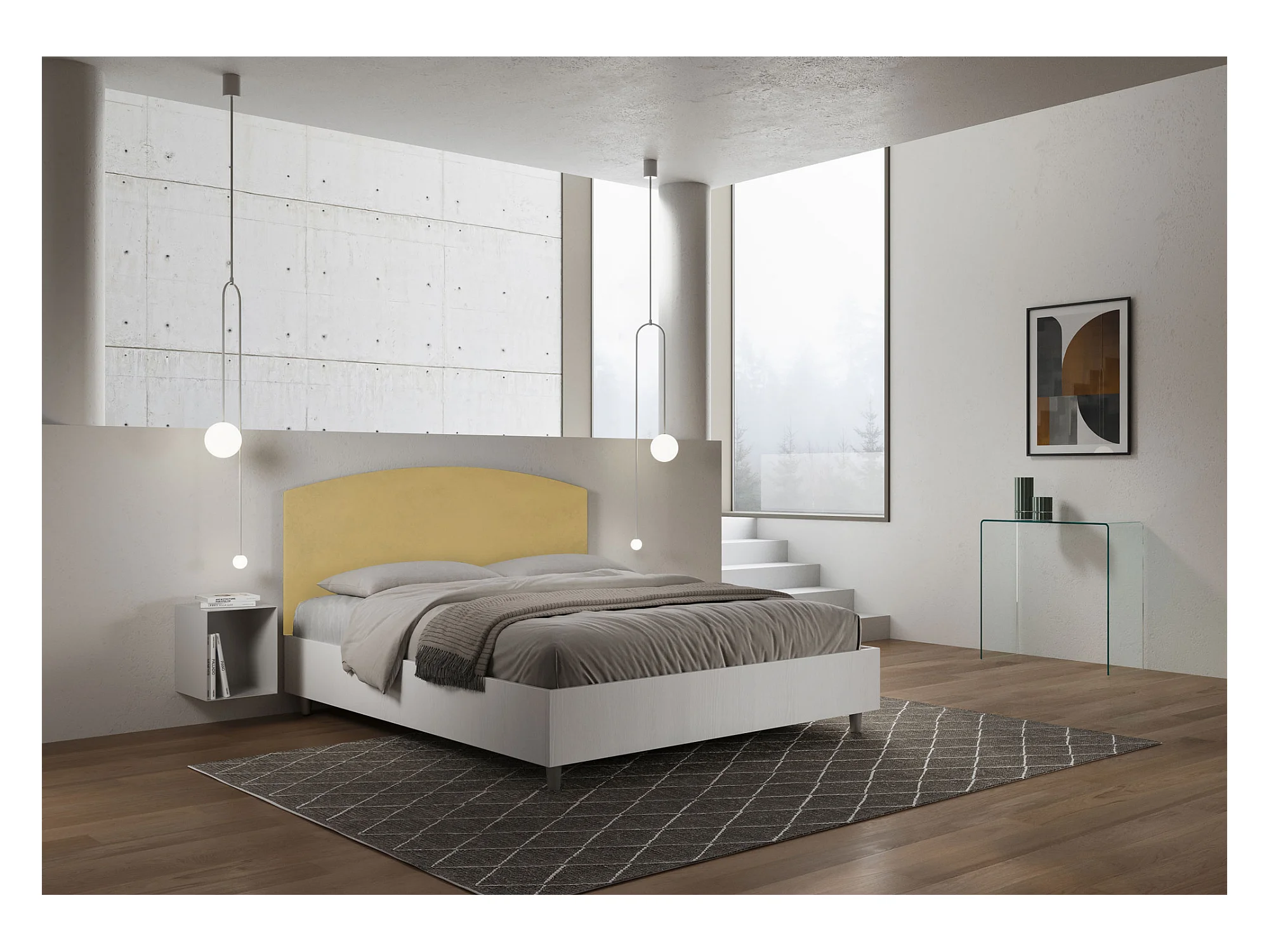Letto con rete 160x190 struttura bianco frassino testata Nobilitato/Microfibra ocra Antilia