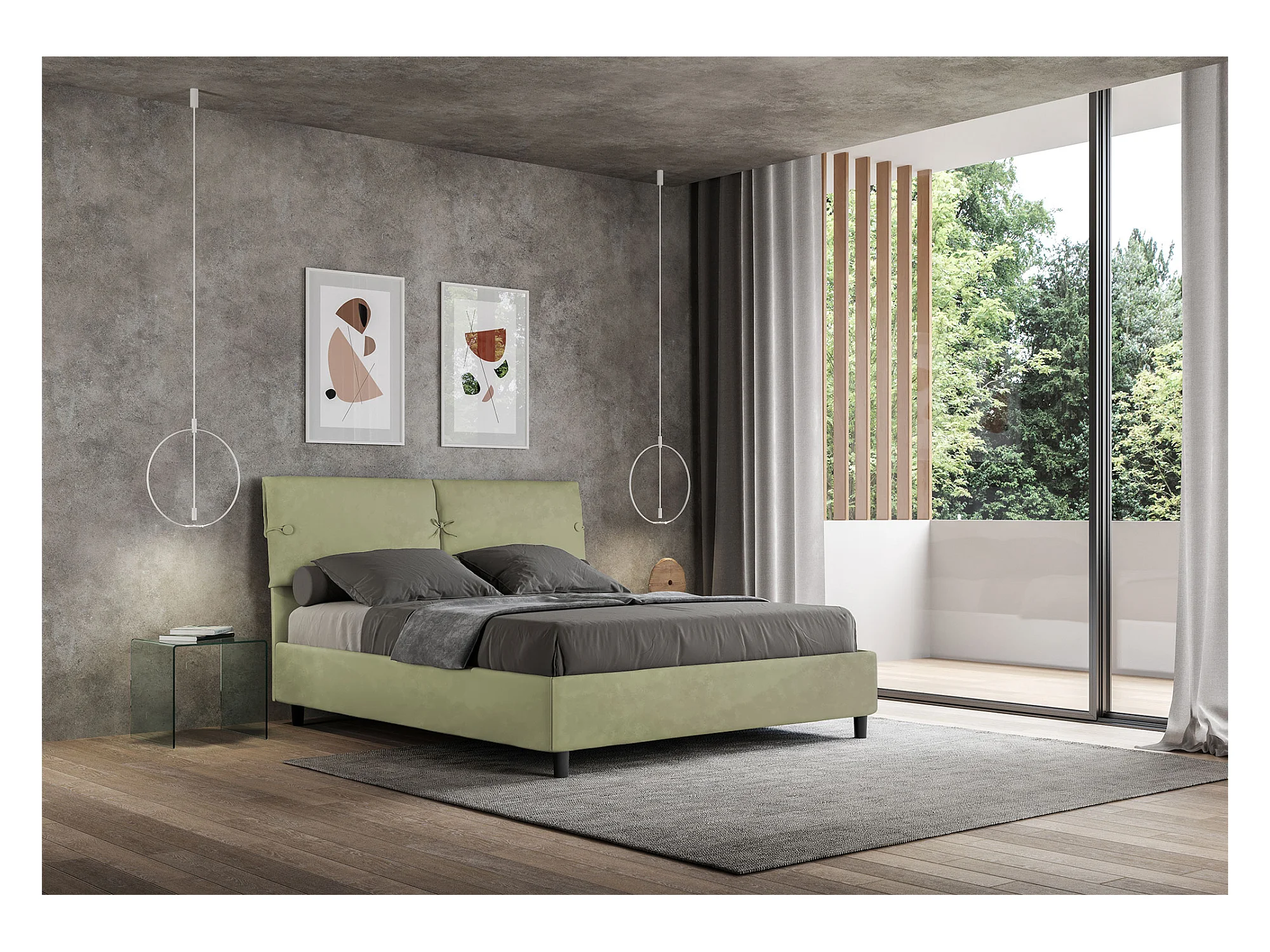 Letto con rete imbottito 160x190 microfibra tè verde Sleeper
