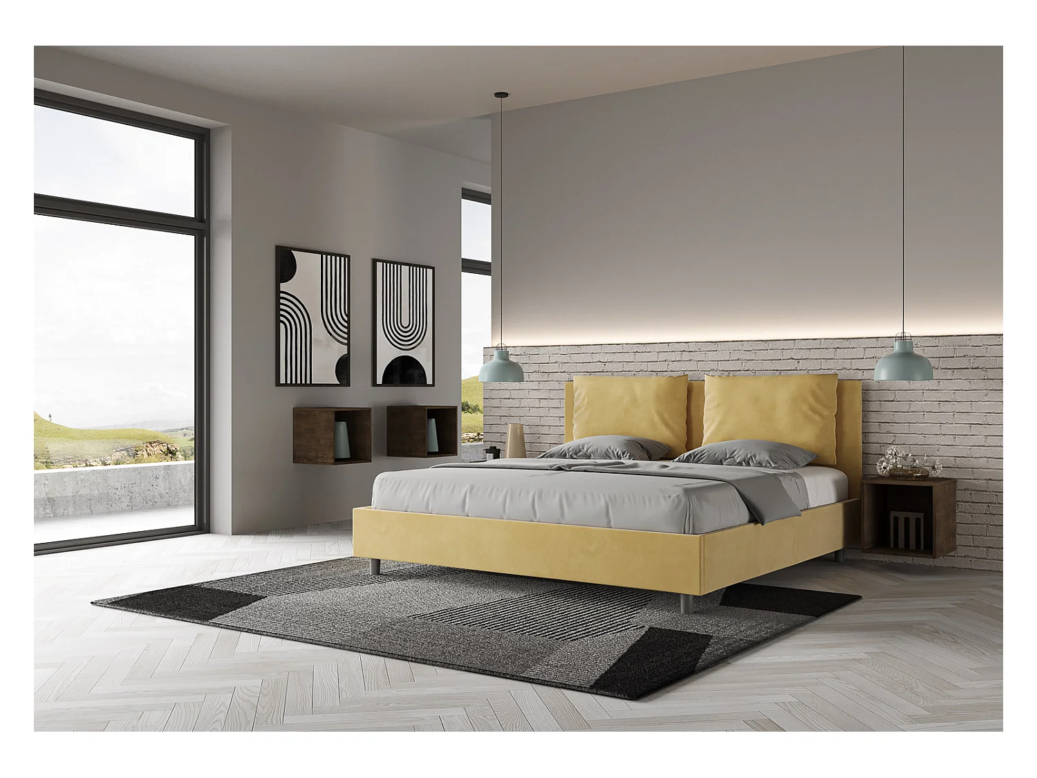 Letto senza rete imbottito 180x200 microfibra ocra Antea