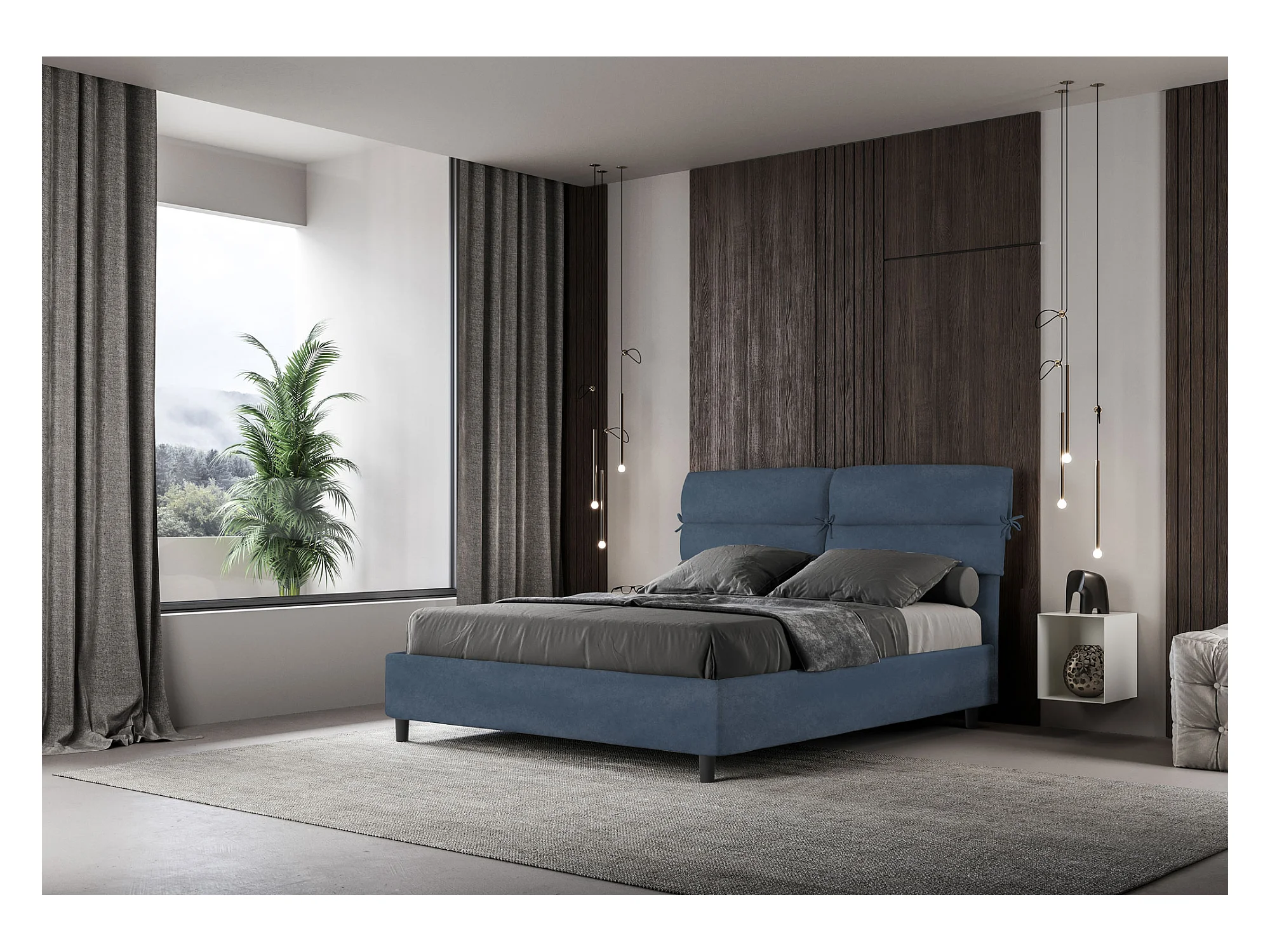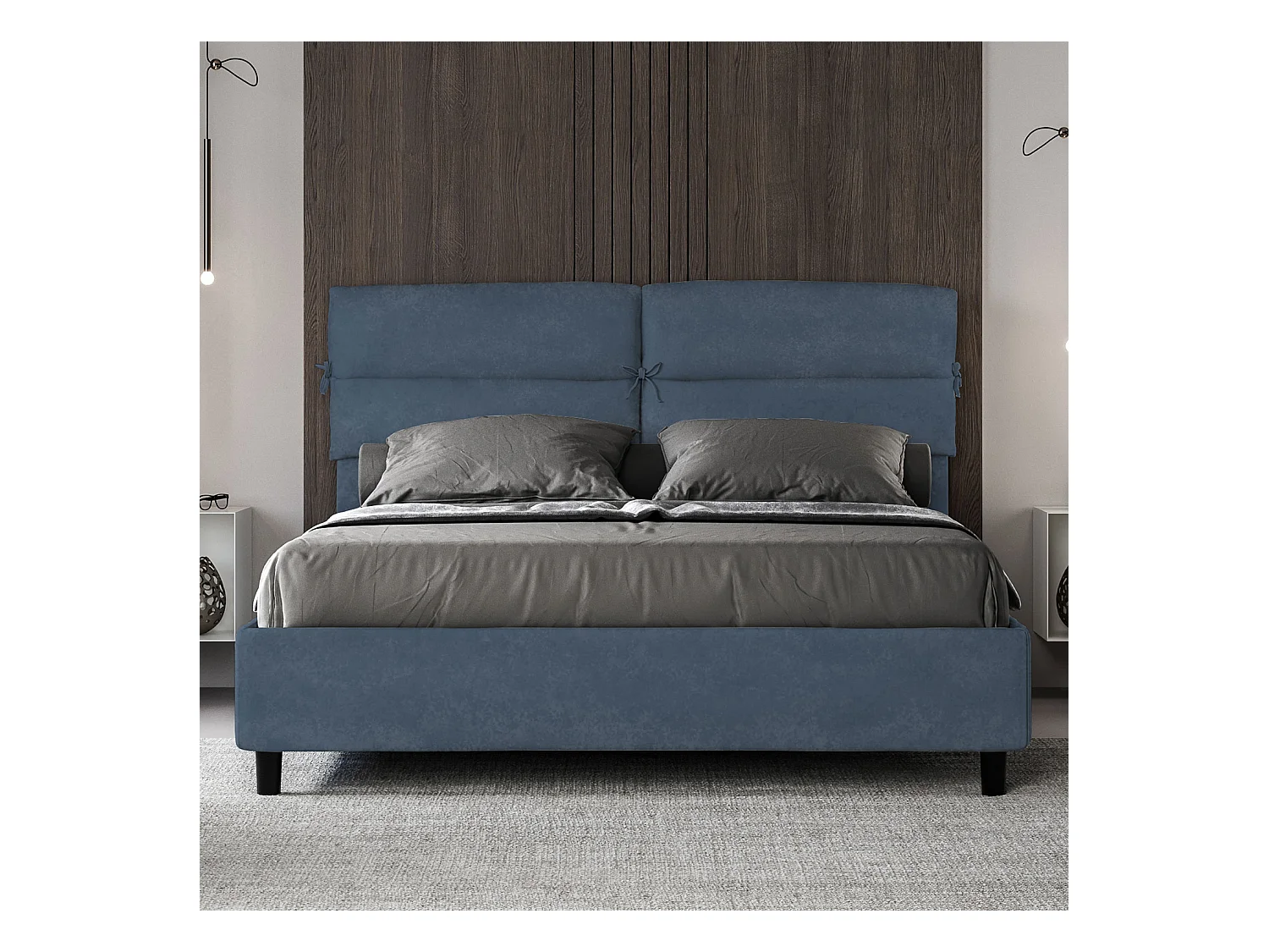 Letto senza rete imbottito 160x190 microfibra blu Nandy
