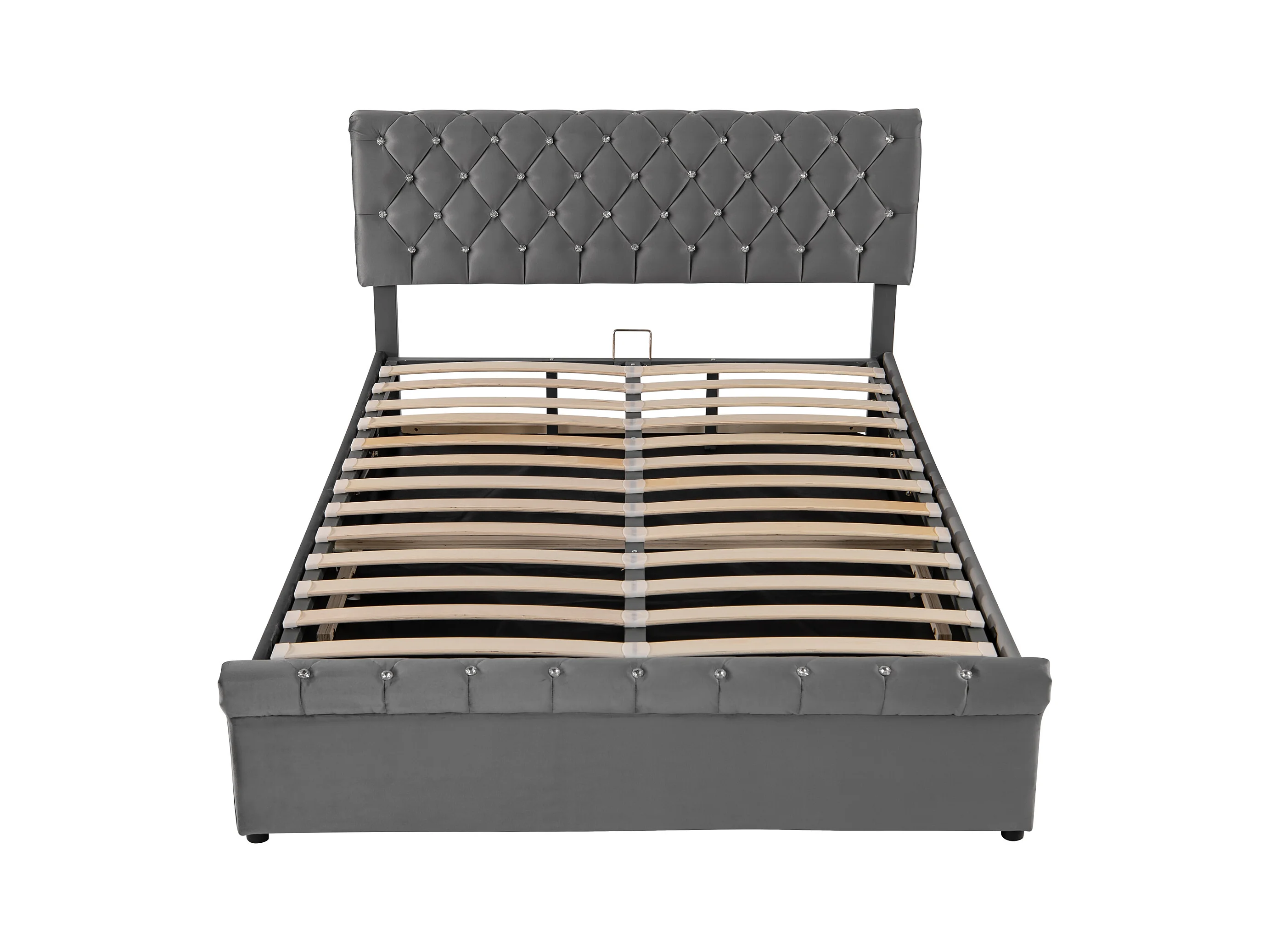 Letto in velluto con ali, bottoni decorativi, idraulico con contenitore, 140x200 cm, grigio (207x146x99 cm)