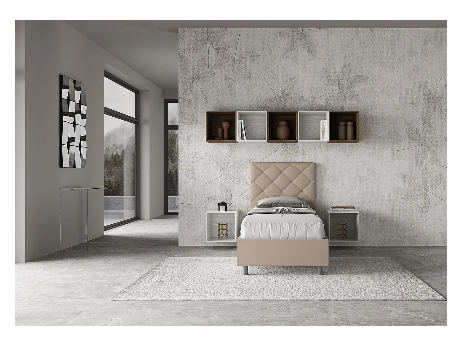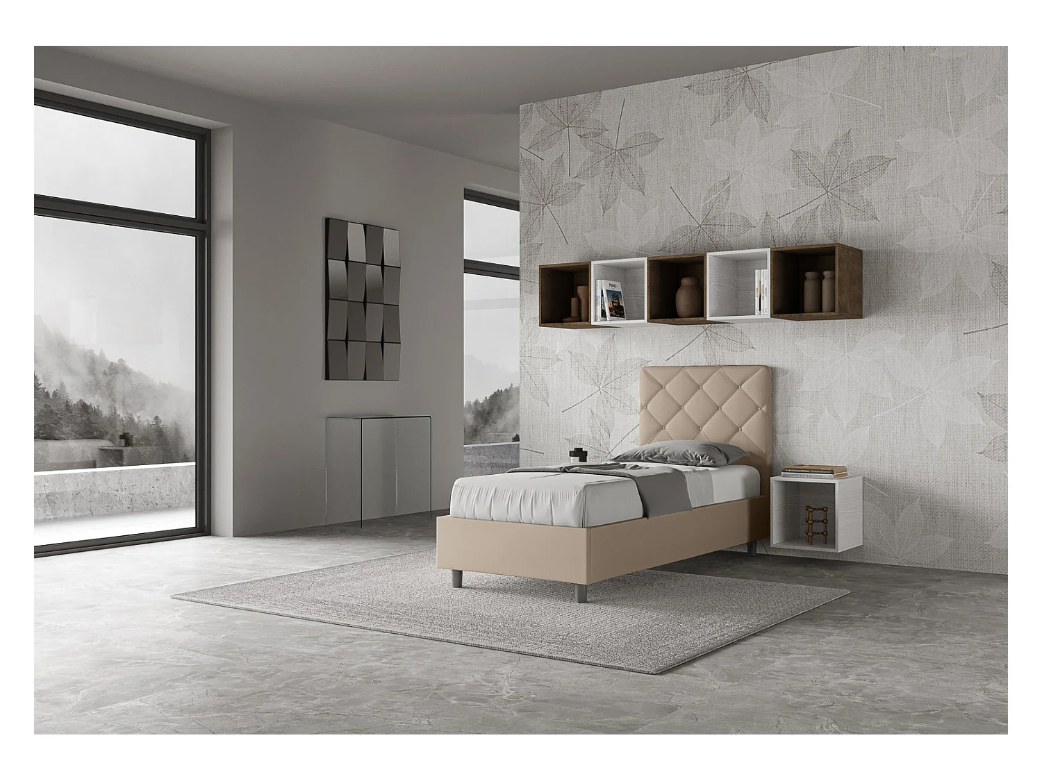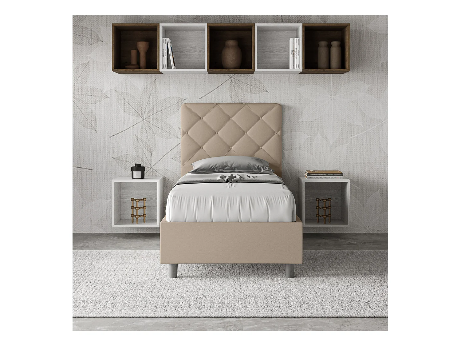 Letto senza rete imbottito 80x190 similpelle tortora Appia