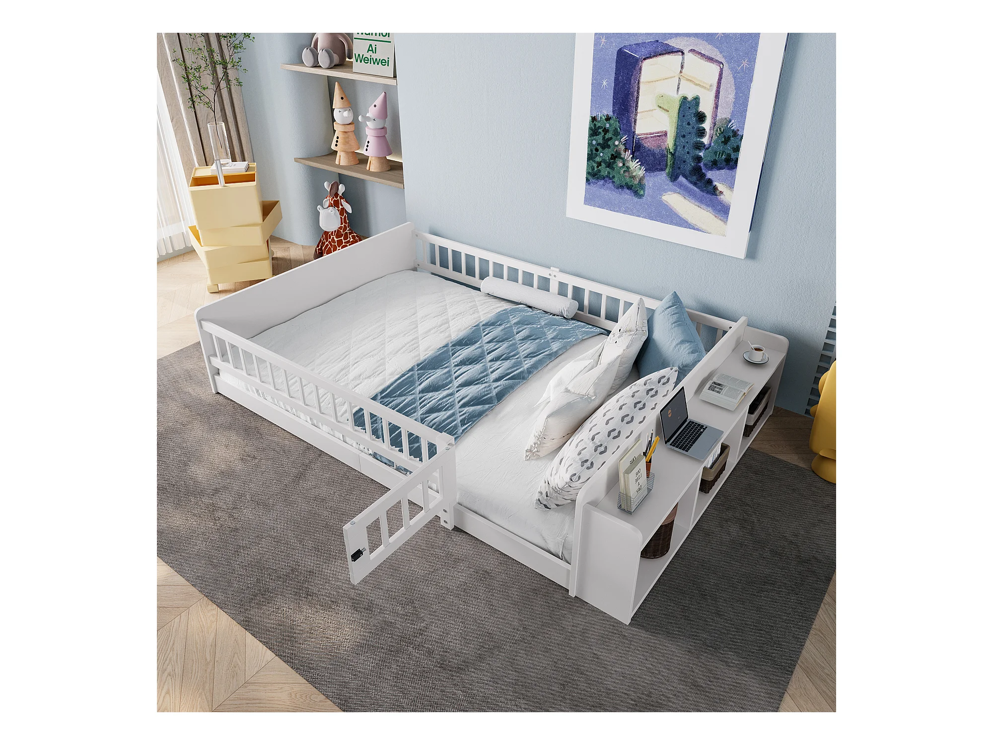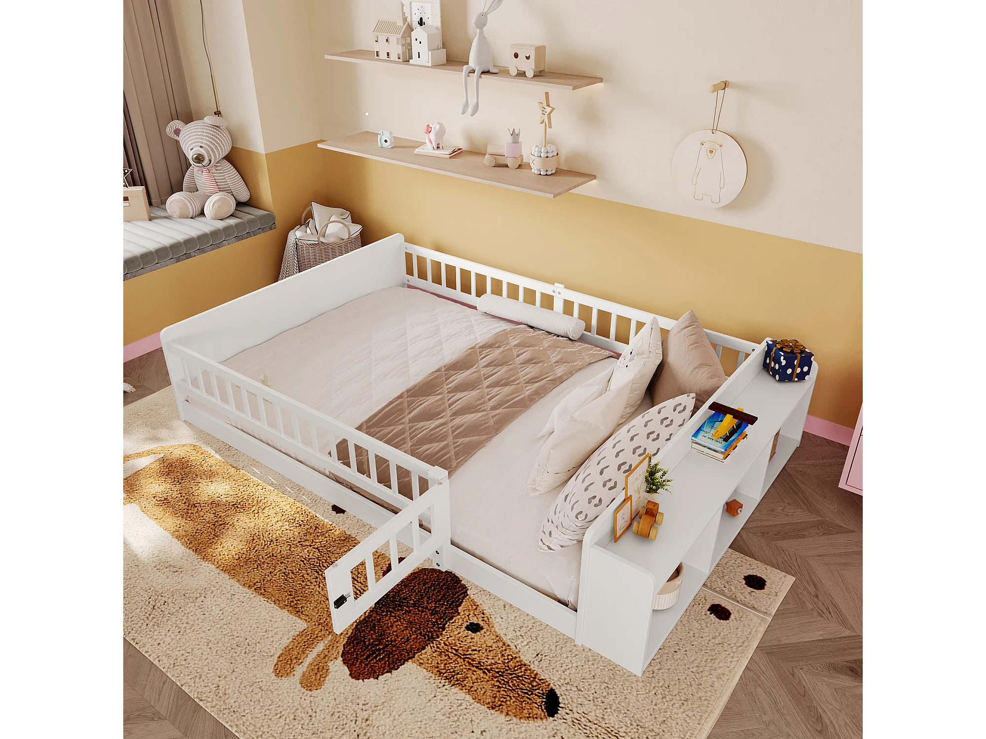 Lit enfant 140x190 bois massif rangement ouvert étagères sécurité blanc