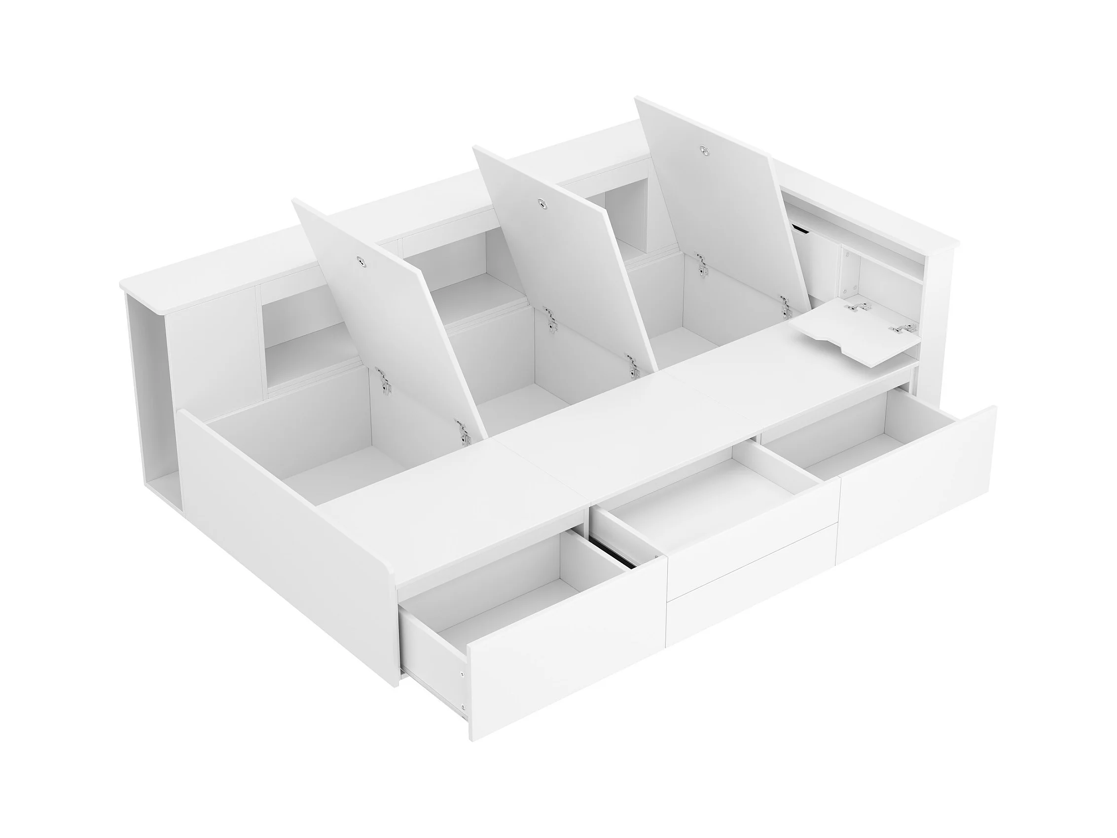 Canapé illuminato 90x200 cm MDF con scrivania integrata, 2 cassetti e porte USB bianche
