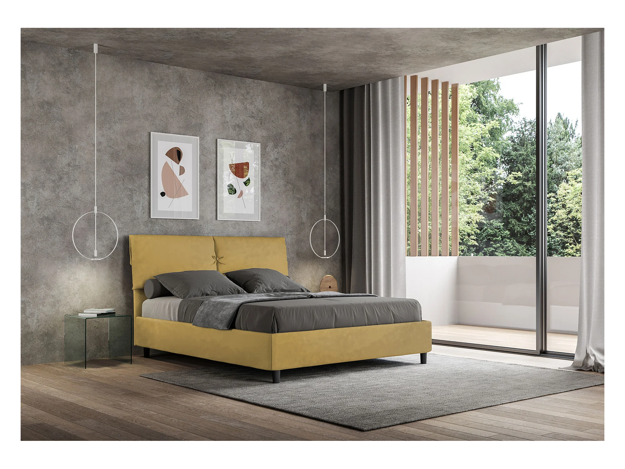 Letto con rete imbottito 160x190 microfibra ocra Mados