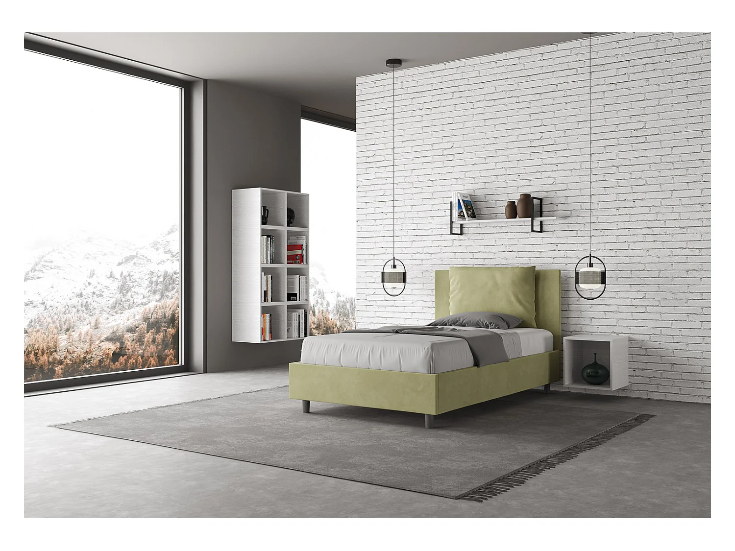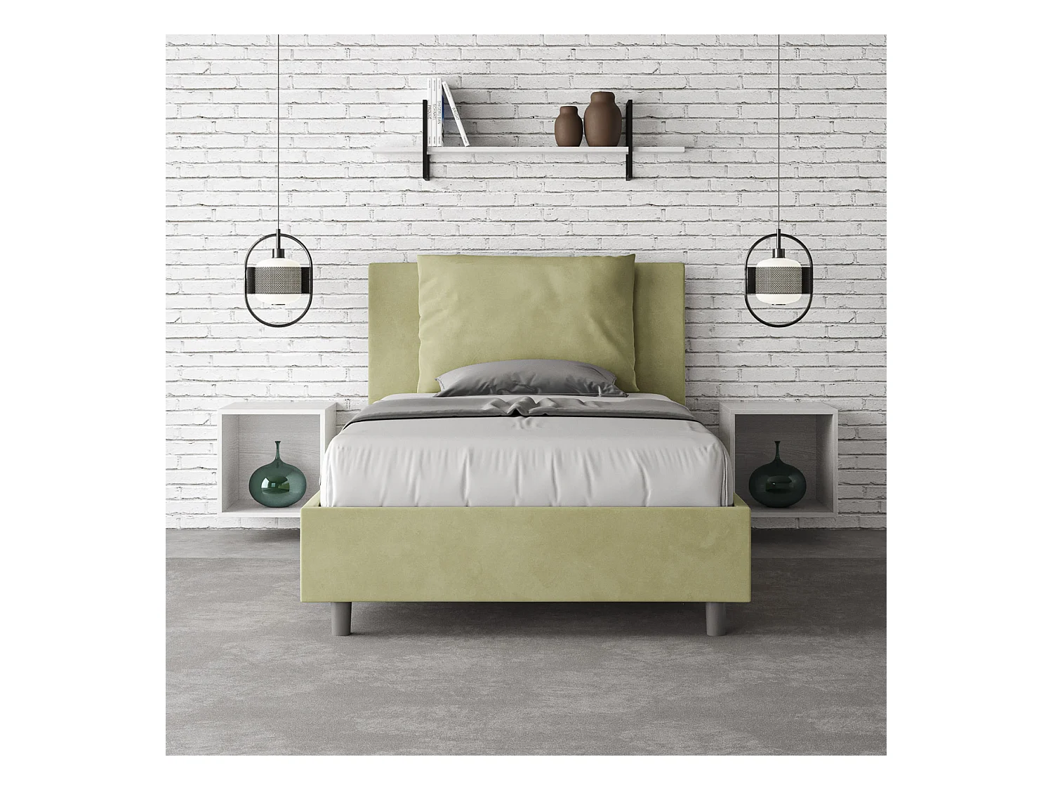 Letto senza rete imbottito 120x190 microfibra tè verde Antea
