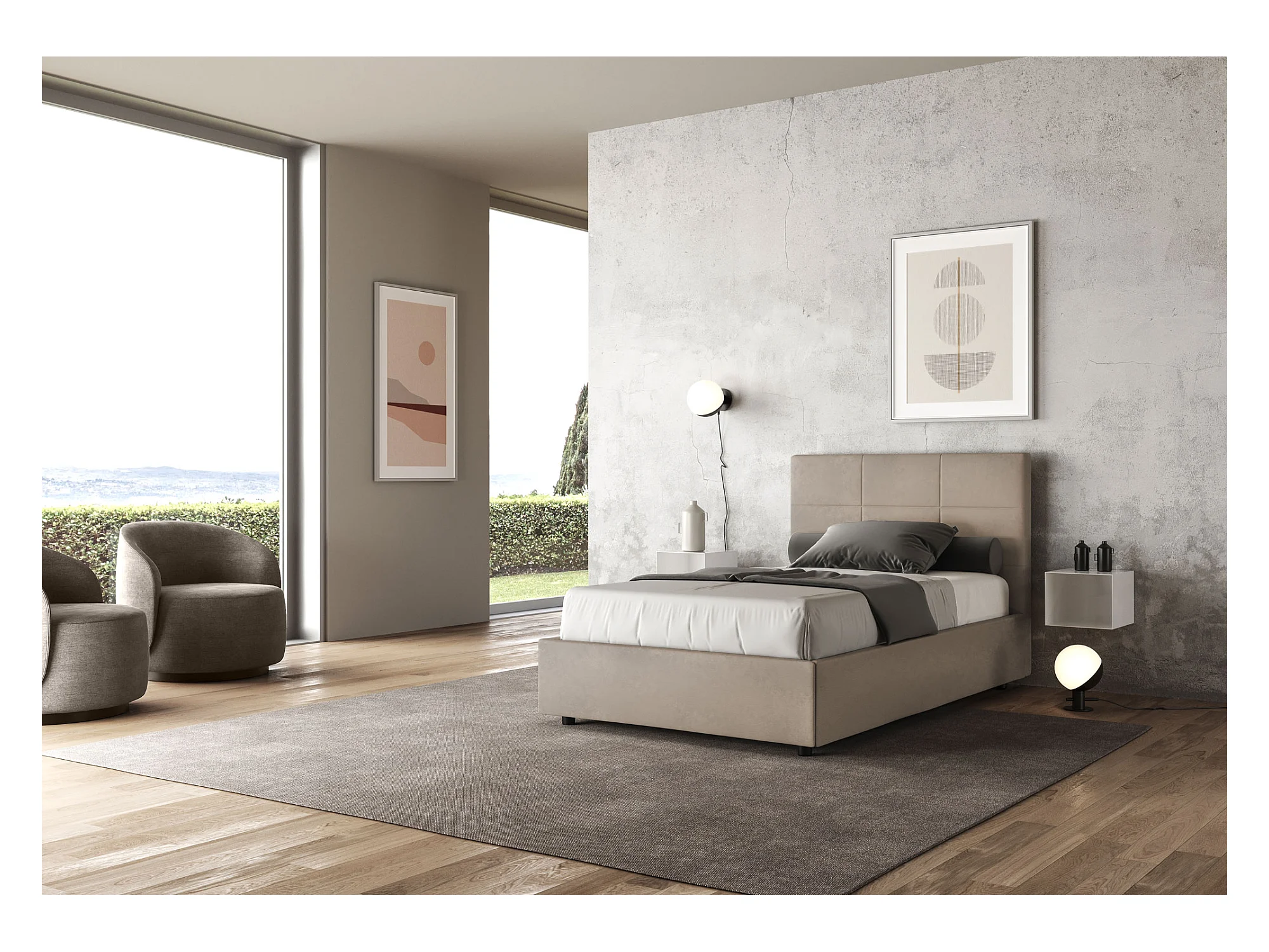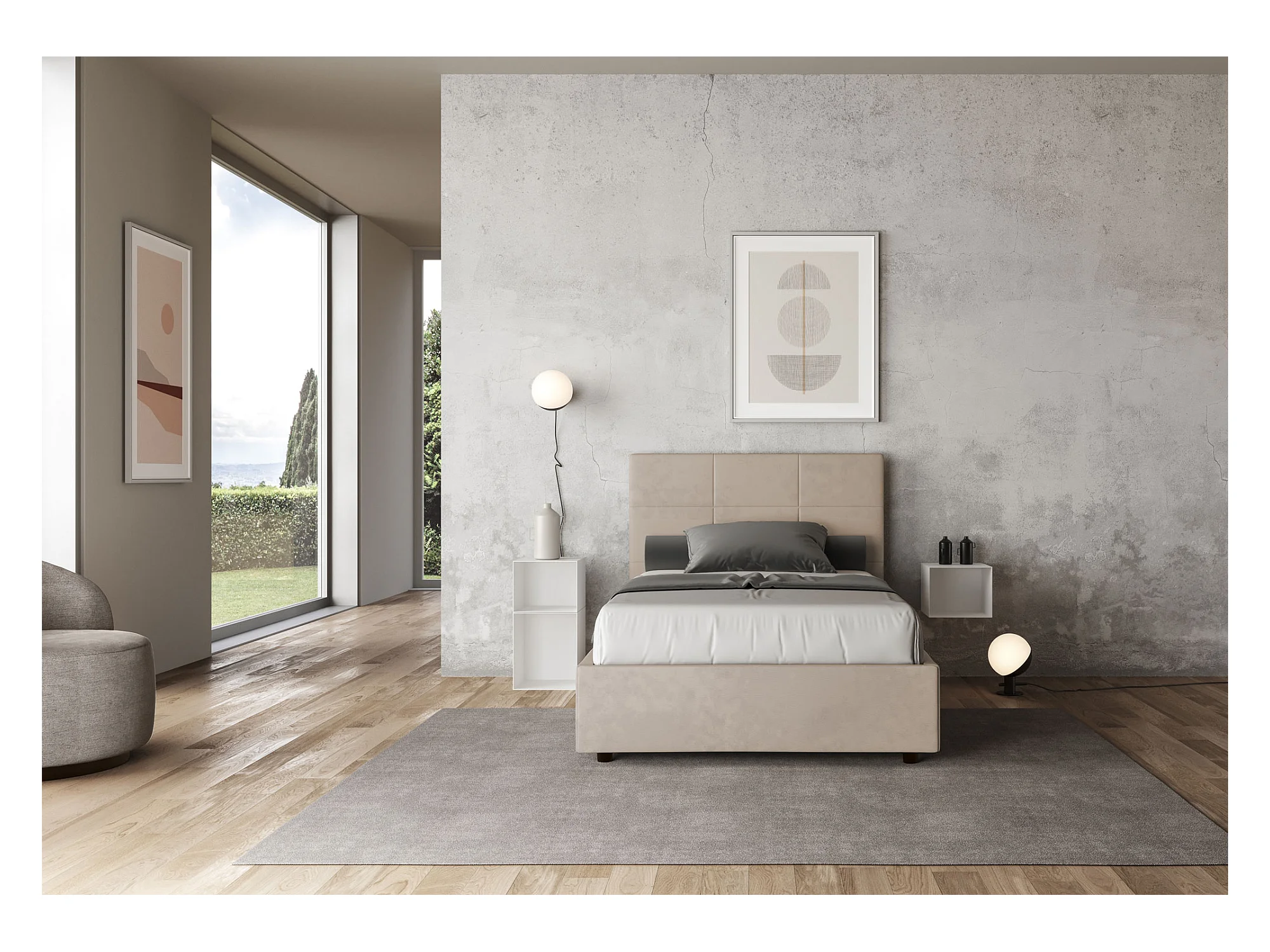 Letto senza rete imbottito 120x200 microfibra sabbia Mika